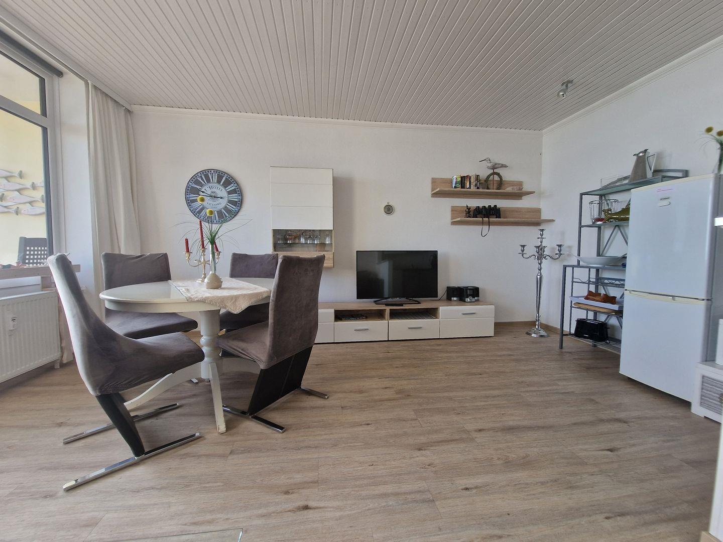 Dieses sehr gepflegte 2-Zimmer-Appartement befindet sich im 8. Stock des Hauses und wird Sie mit einem traumhaften Ausblick begeistern: Vom gemütlich ausgestatteten Südbalkon genießen Sie die Aussicht über den gesamten Südstrand mit seiner neuen Promenade auf das mal glitzernde, mal stürmische und mal spiegelglatte Meer!
