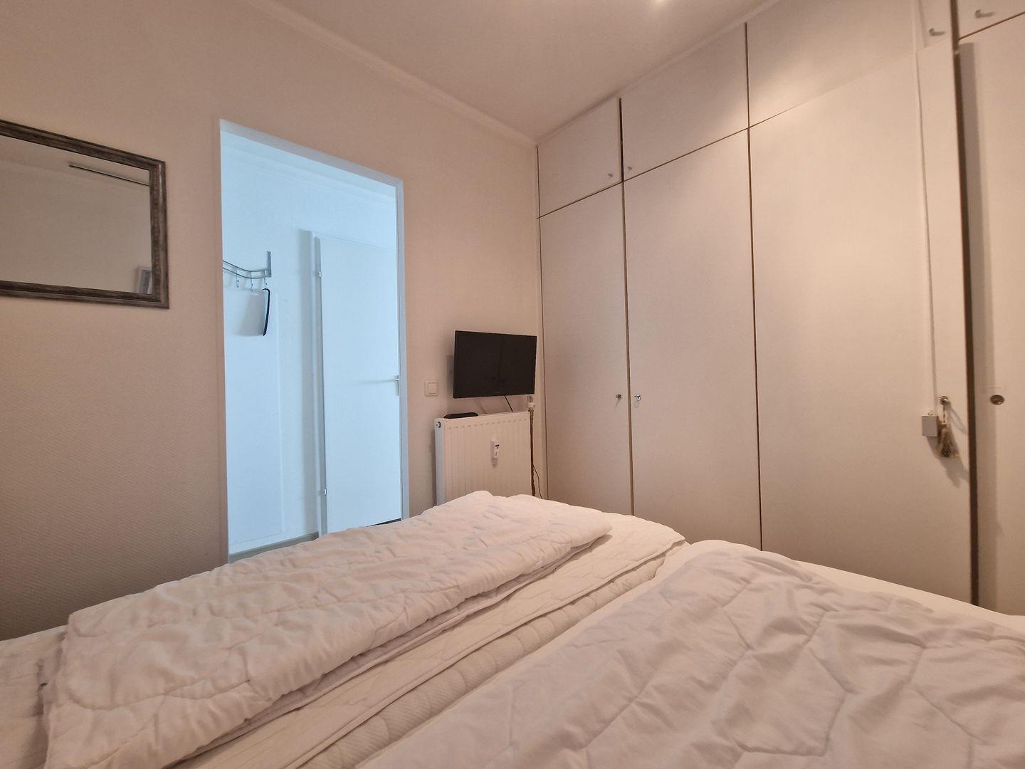 Das Schlafzimmer verfügt über ein bequemes Doppelbett (180 * 200 cm) sowie einen geräumigen Kleiderschrank, dieser Bereich kann durch eine Schiebetür vom Wohnbereich abgetrennt werden. Bei der Einrichtung wurde auf eine helle freundliche Inneneinrichtung geachtet und ein kleiner weiterer TV lädt zur Entspannung vor geruhsamen Nächten ein.