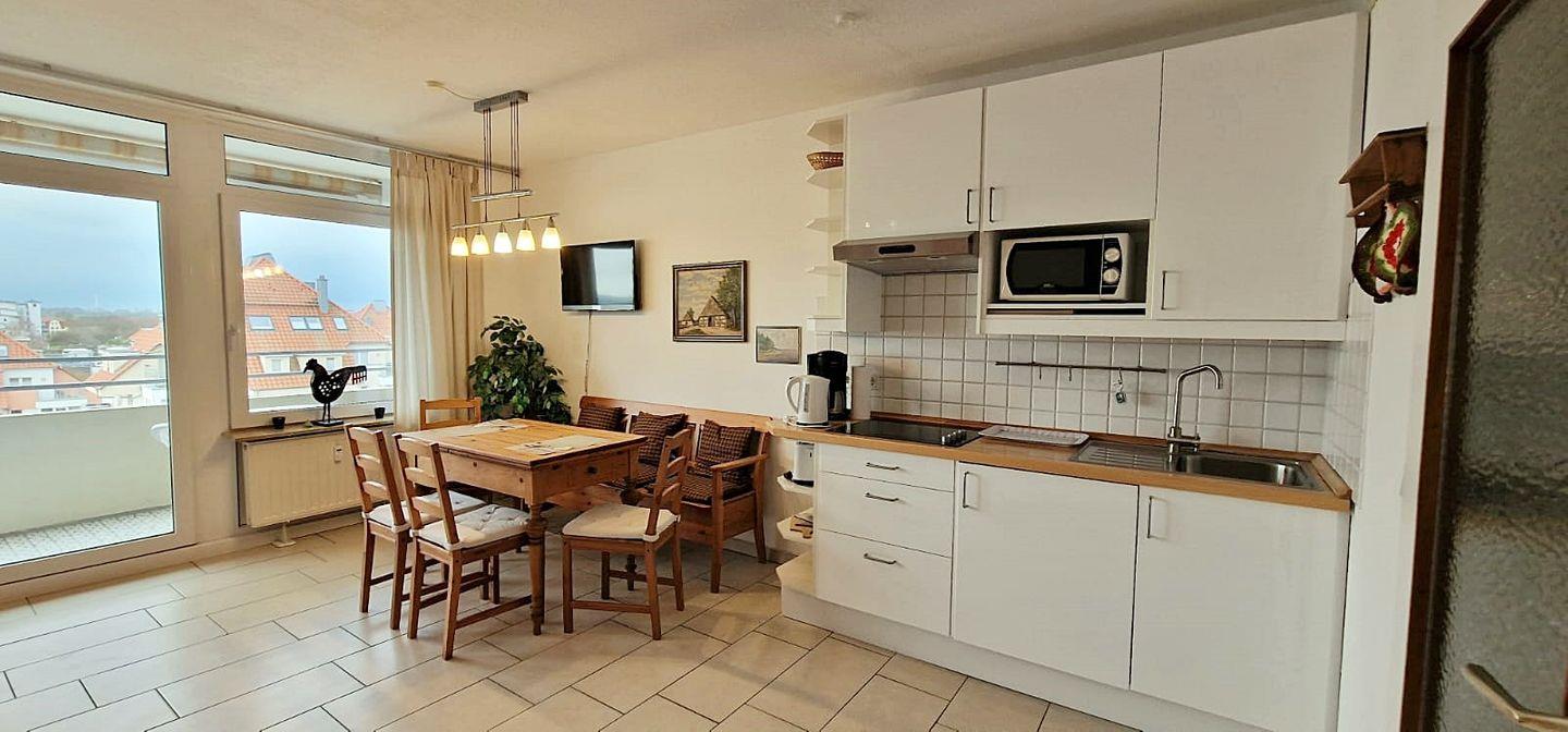 Die Küche bietet alles, was Sie zur Selbstversorgung in Ihrem Urlaub benötigen: Cerankochfeld, Microwelle, Wasserkocher, Kaffeemaschine sowie alles Notwendige zum Zubereiten ihrer Speisen.