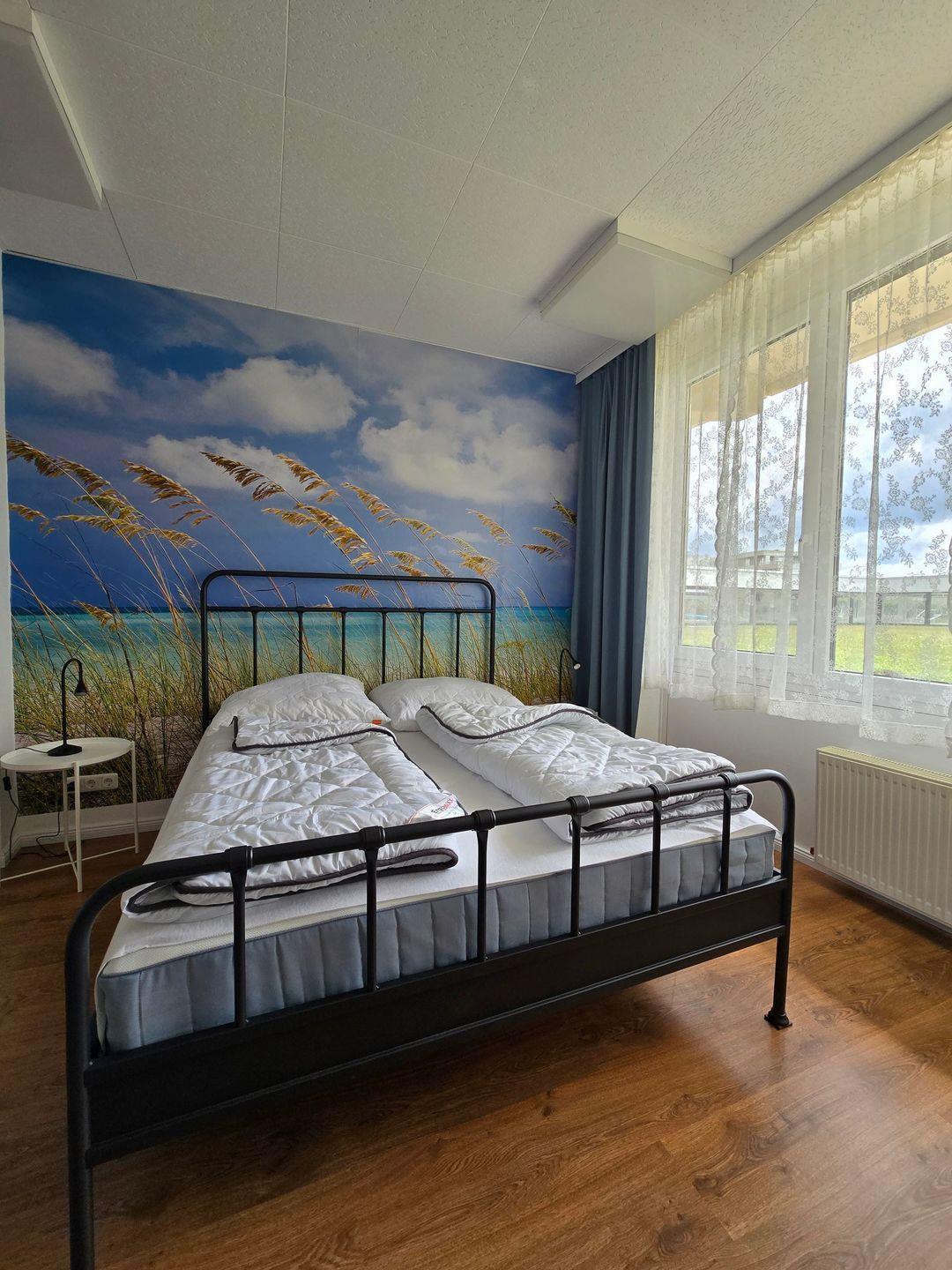 Das Schlafzimmer mit Boxspringbett (180*200 cm) punktet mit einer großen Fensterfront, Nachttischen, ein Sideboard sowie ein Flachbild TV. Bei etwas Wellengang können Sie hier sogar mit Meeresrauschen einschlafen und gut ausgeruht in den nächsten Tag starten.