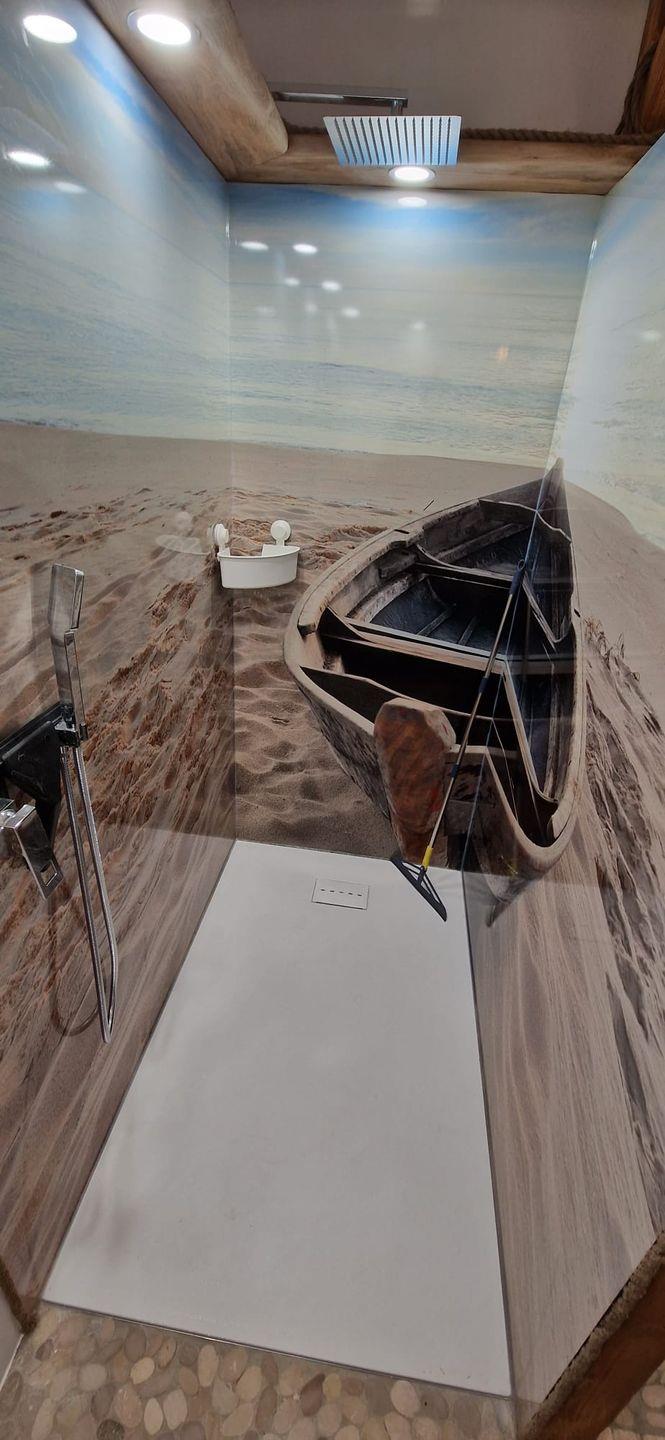Die Unterkunft bietet ein modernes individuelles Badezimmer mit bodengleicher Dusche, WC und Waschtisch. Für zusätzlichen Komfort sorgt der Haartrockner, den Sie in der Wohnung finden. Zudem stehen Waschmaschine und Trockner zur Verfügung, deren Nutzung gemeinschaftlich erfolgt.