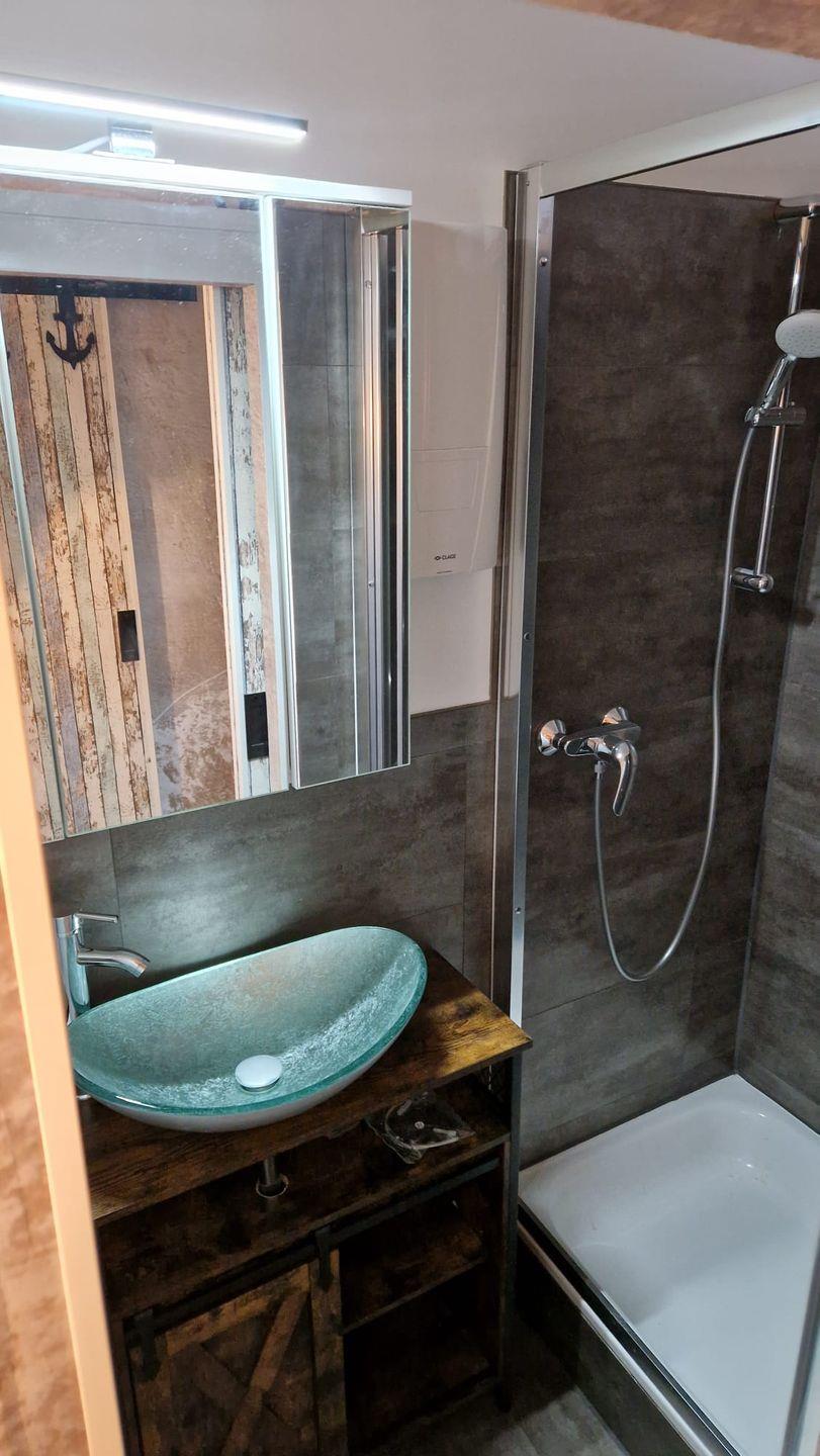 Die Ferienwohnung verfügt über ein gemütliches Schlafzimmer mit bequemen Schlafmöglichkeiten sowie eines zusätzlichen TV´s. Das moderne Badezimmer ist mit einer Dusche ausgestattet. Der offene Wohnbereich ist hell und freundlich gestaltet und lädt zum Entspannen ein. Hier finden Sie eine Sofaecke mit Möglichkeit diese in eine Schlafgelegenheit umzuwandeln, einen 65Zoll Flachbildschirm, einen Esstisch und eine gut ausgestattete Küche mit einem Cerankochfeld, einer Spülmaschine und einem Kühlschrank mit Gefrierfach. Der offene Küchenbereich ermöglicht es Ihnen, beim Kochen die geselligen Momente mit Ihrer Familie oder Freunden zu genießen.