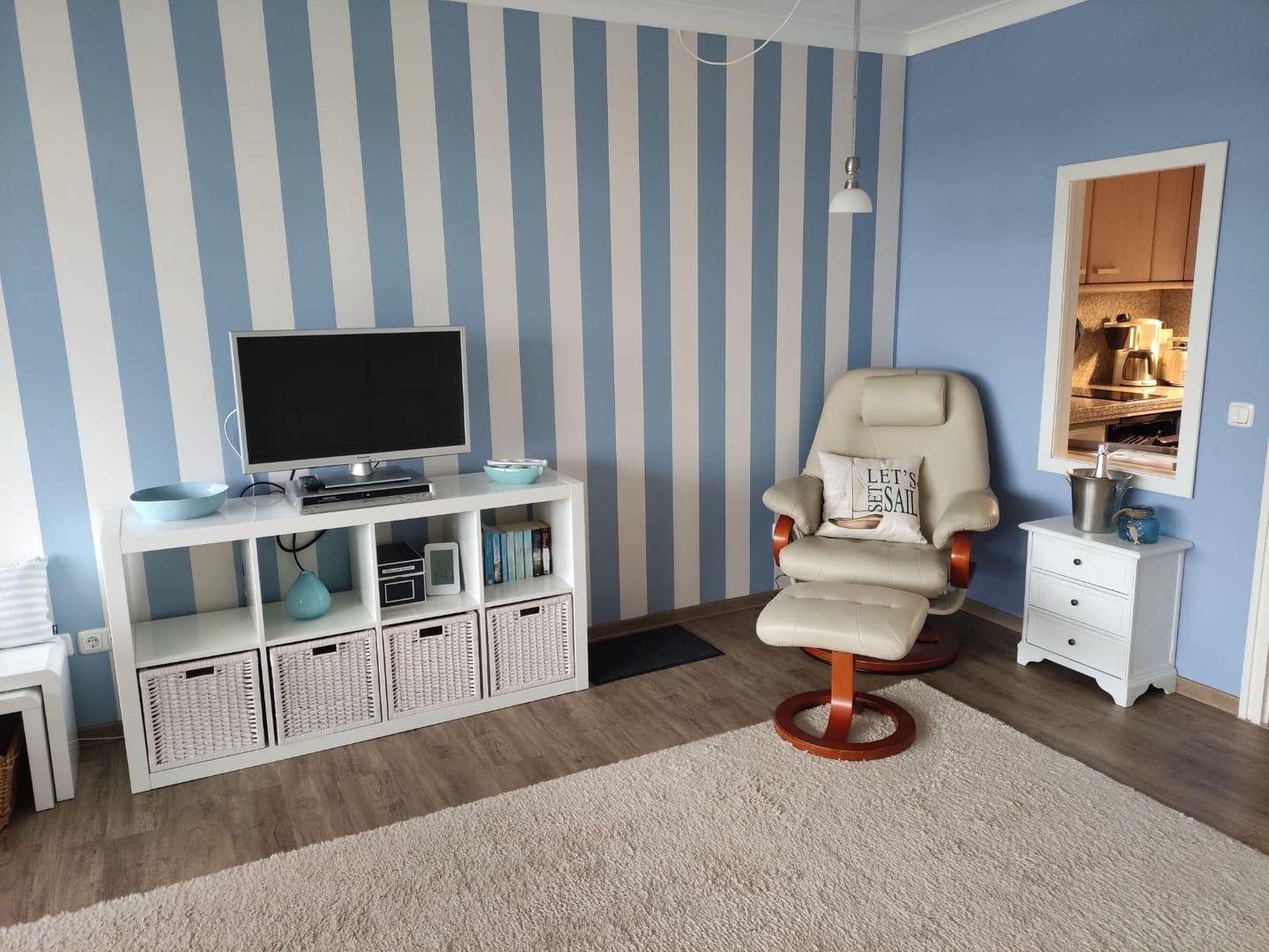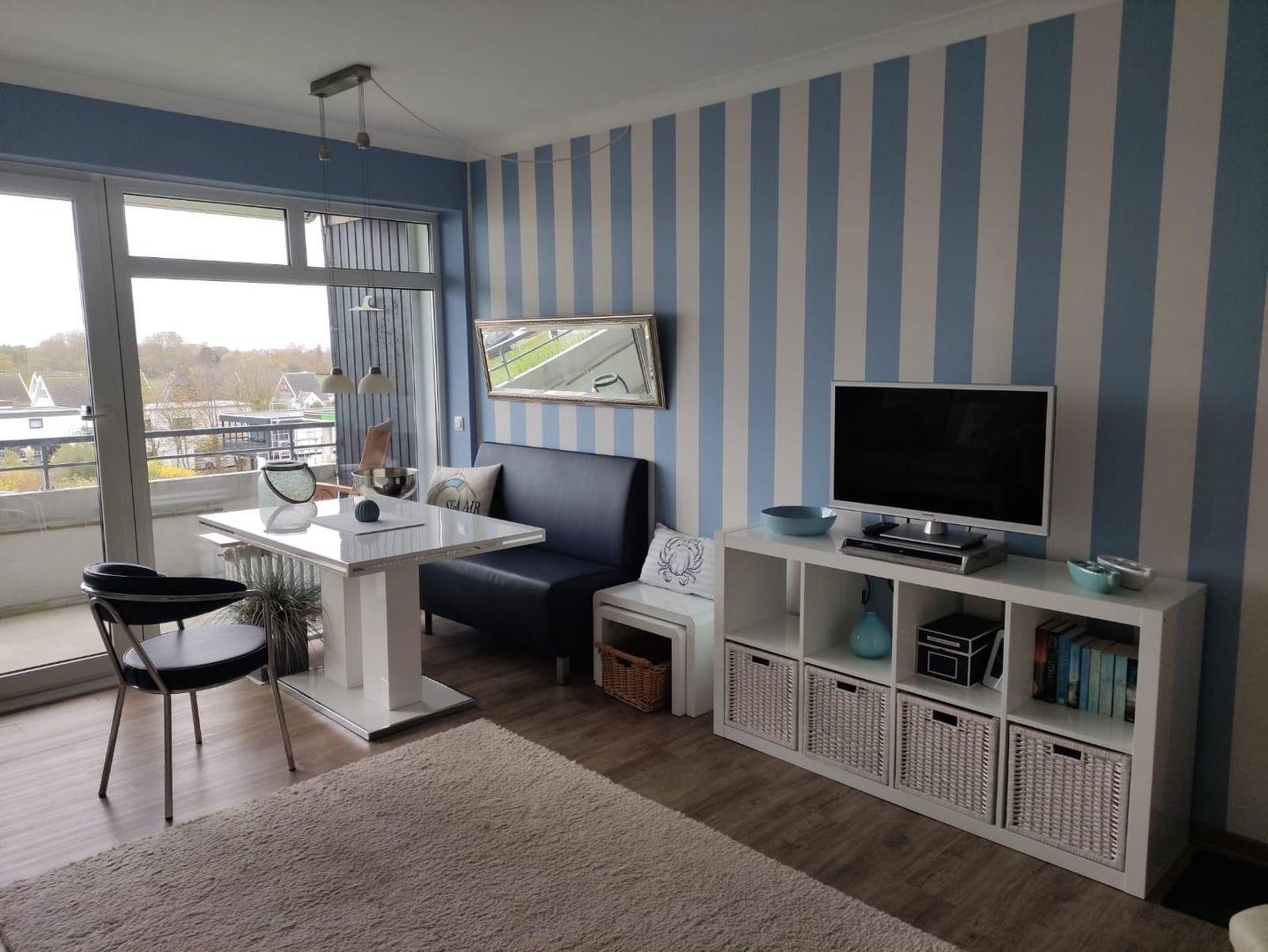 Ein weiteres Highlight ist der überdachte Balkon mit elektrischer Markise, auf dem Sie bei jedem Wetter die Aussicht genießen können. Hier stehen Ihnen Gartenmöbel und ein Strandkorb zum Relaxen zur Verfügung. Die Wohnung ist vollständig mit WLAN ausgestattet, so bleiben Sie stets online, um Ihre liebsten Urlaubsziele zu recherchieren oder Ihre schönsten Momente zu teilen.