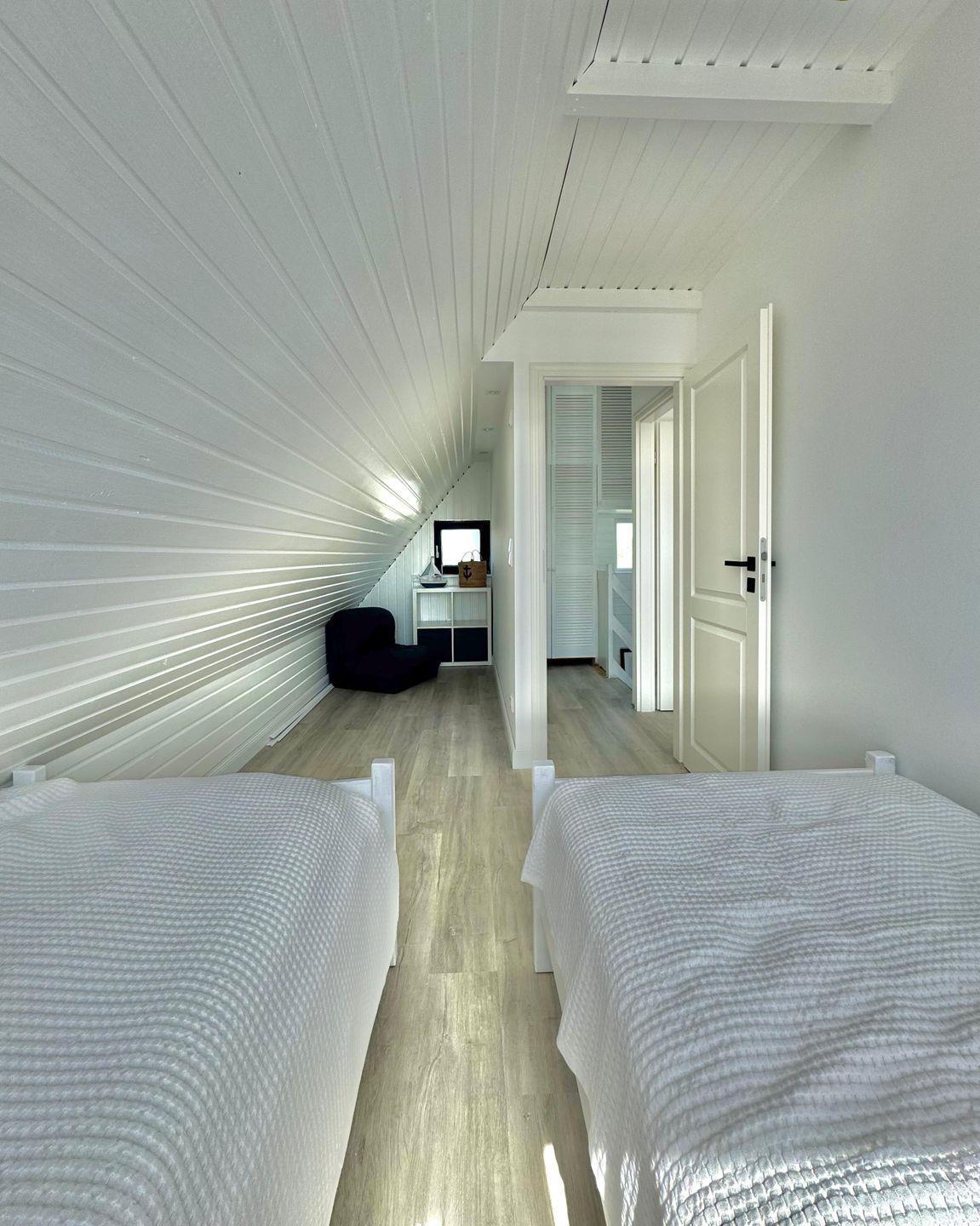 Die komplett in 2025 sanierte Unterkunft bietet Platz für bis zu fünf Personen in zwei einladenden Schlafzimmern, die mit modernem Vinylboden ausgestattet sind. Das Hauptschlafzimmer bietet viel Platz und Stauraum für ihre Urlaubsgarderobe, während das zweite Schlafzimmer, ebenfalls hell und einladend, zusätzlichen Komfort für Ihre Familie oder Freunde bietet. Der offene Wohnbereich ist mit einer gemütlichen Sofaecke ausgestattet, die zum Entspannen einlädt. Zusätzlich verfügt das Wohnzimmer über einen Samsung Ambilight Smart TV mit Sat TV. Ein großer Esstisch im Essbereich lädt dazu ein, gemeinsame Mahlzeiten zu genießen und die Erlebnisse des Tages auszutauschen.