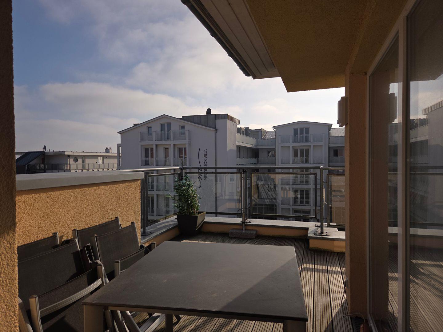 Auf den zahlreichen Dachterrassen erwarten Sie bequeme Terrassenstühle, sowie ein Tisch mit Bestuhlung.