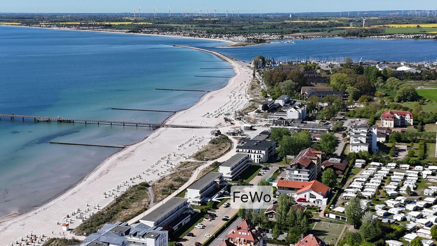 Komfortable Ferienwohnung Bellevue B33 in Großenbrode, direkt am Sandstrand, mit Terrasse, Wintergarten und Parkplatz.