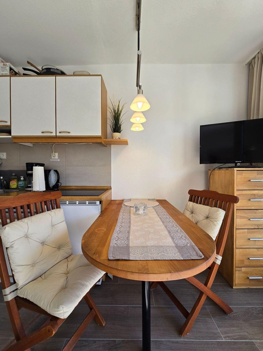 Das Apartment verfügt über zwei Zimmer, darunter ein separates Schlafzimmer (ausziehbares Bett) und ein gemütliches Wohnzimmer mit offener Küche. Insgesamt stehen Ihnen drei Schlafmöglichkeiten zur Verfügung, sodass kleine Familien oder Paare ausreichend Platz finden. Kinder sind ausdrücklich willkommen, wodurch die Unterkunft auch für Familienurlaube attraktiv ist.