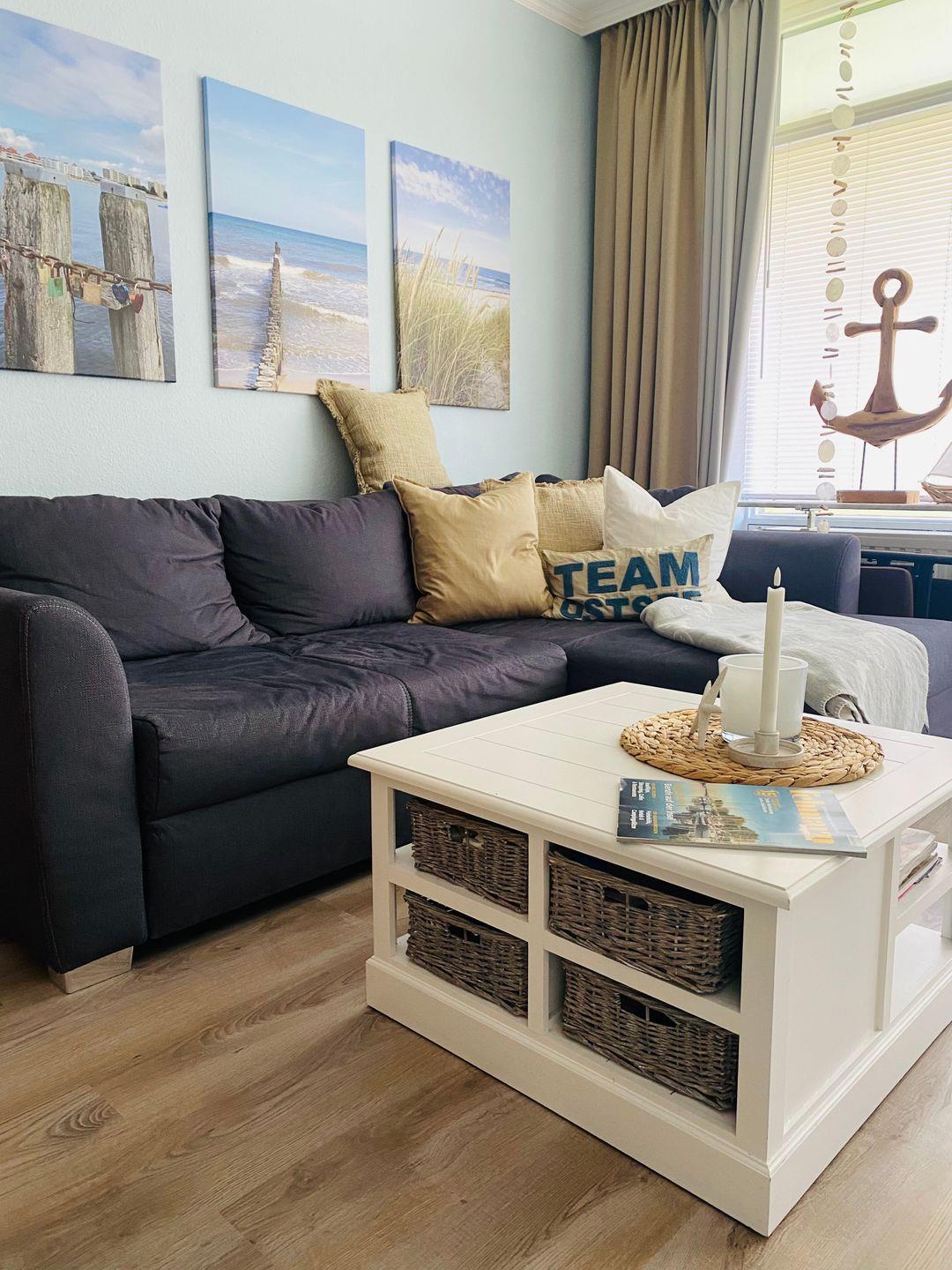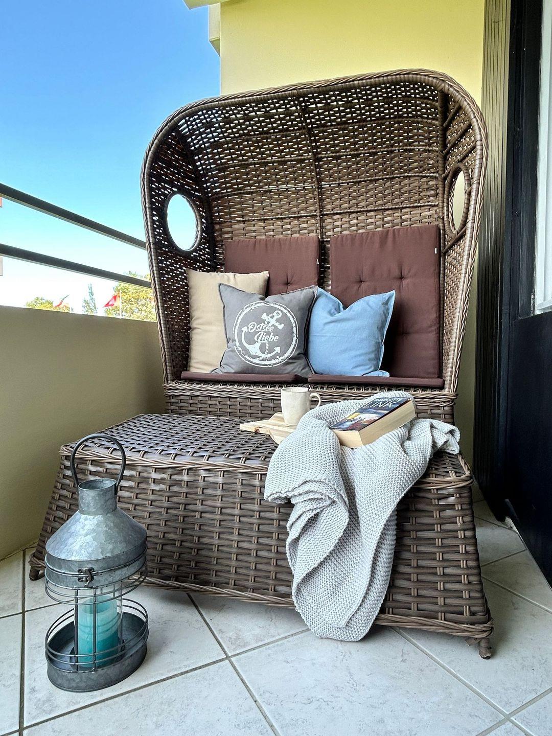 Moderne Ferienwohnung "Auszeit" in Großenbrode mit direktem Ostseestrandzugang und Balkon mit Strandkorb.