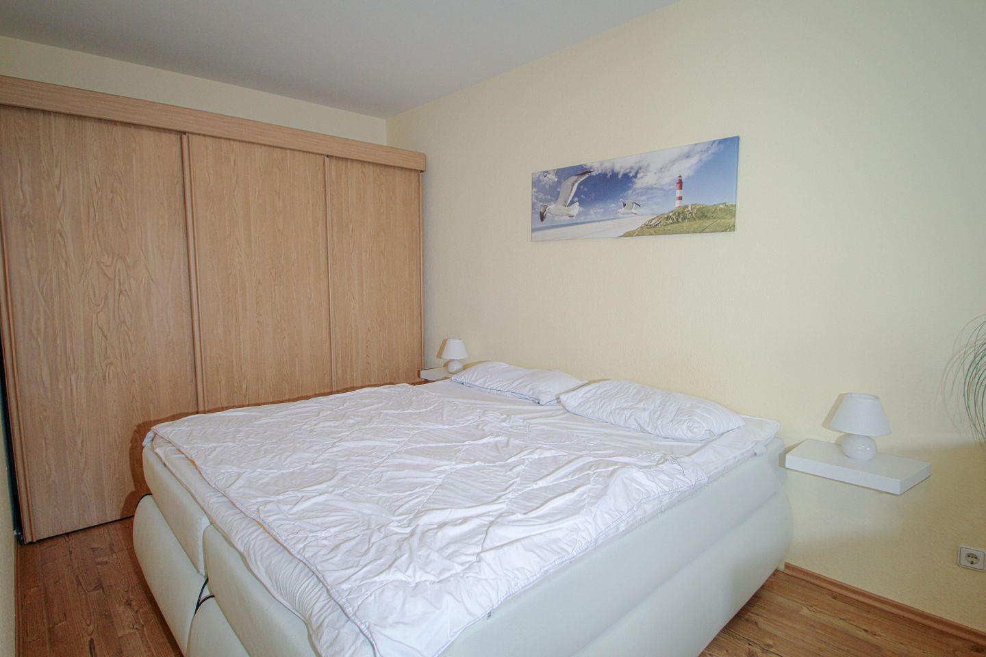 Das Schlafzimmer verfügt über ein komfortables Doppelbett und Laminatboden. Für einen angenehmen Aufenthalt stehen Ihnen ausreichend Stauraum, ein Kleiderschrank und eine Garderobe zur Verfügung. Kinder sind in dieser familienfreundlichen Unterkunft herzlich willkommen.