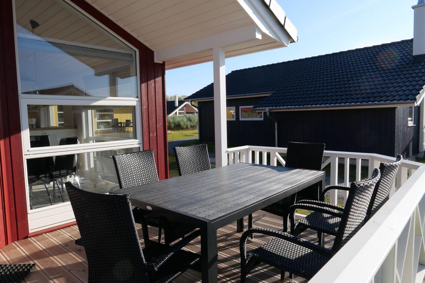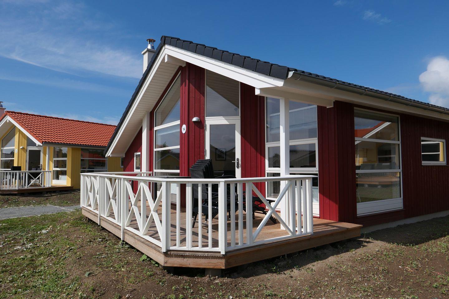 Bitte beachten Sie: Manche Häuser verfügen über ein Geländer um die Terrasse herum, andere nicht. Bei den Außen- und Innenbildern handelt es sich um Modellbilder unterschiedlicher Ferienhäuser.