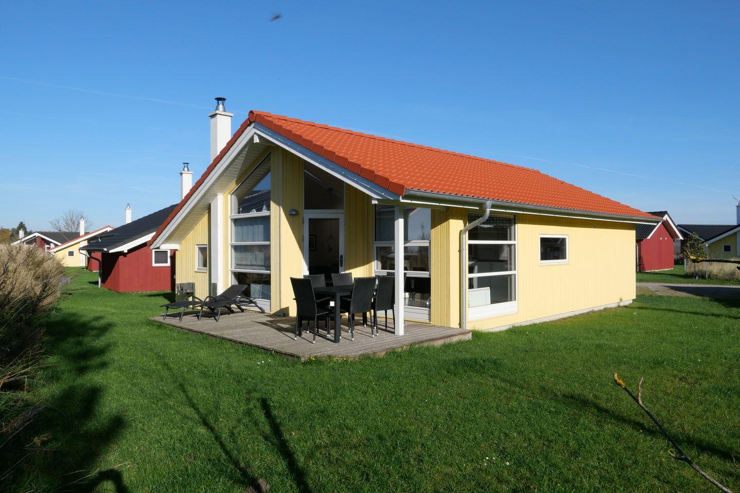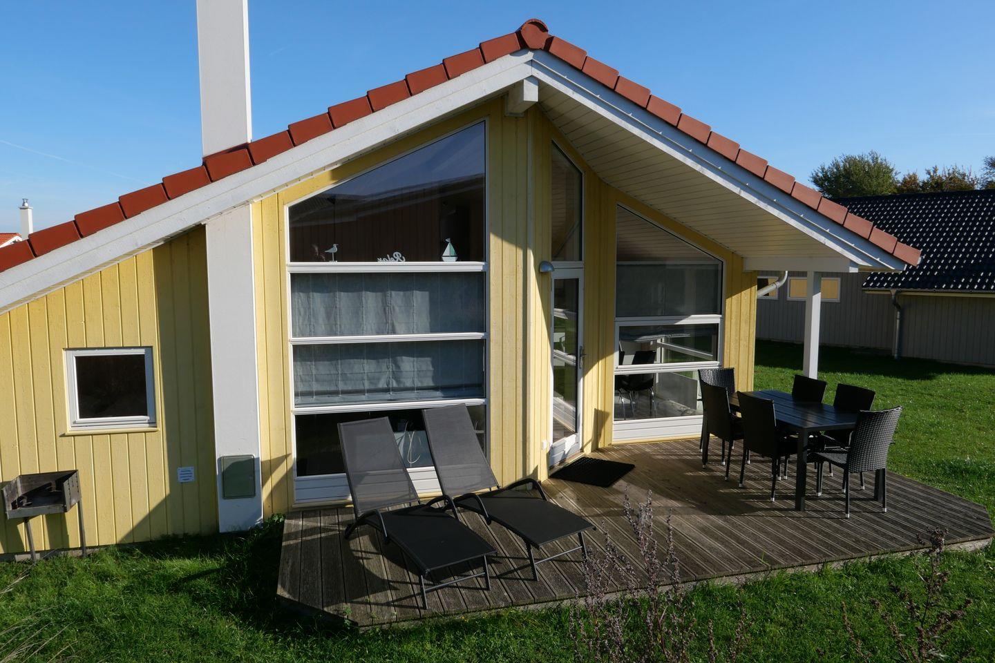 Bitte beachten Sie: Manche Häuser verfügen über ein Geländer um die Terrasse herum, andere nicht. Bei den Außen- und Innenbildern handelt es sich um Modellbilder unterschiedlicher Ferienhäuser.