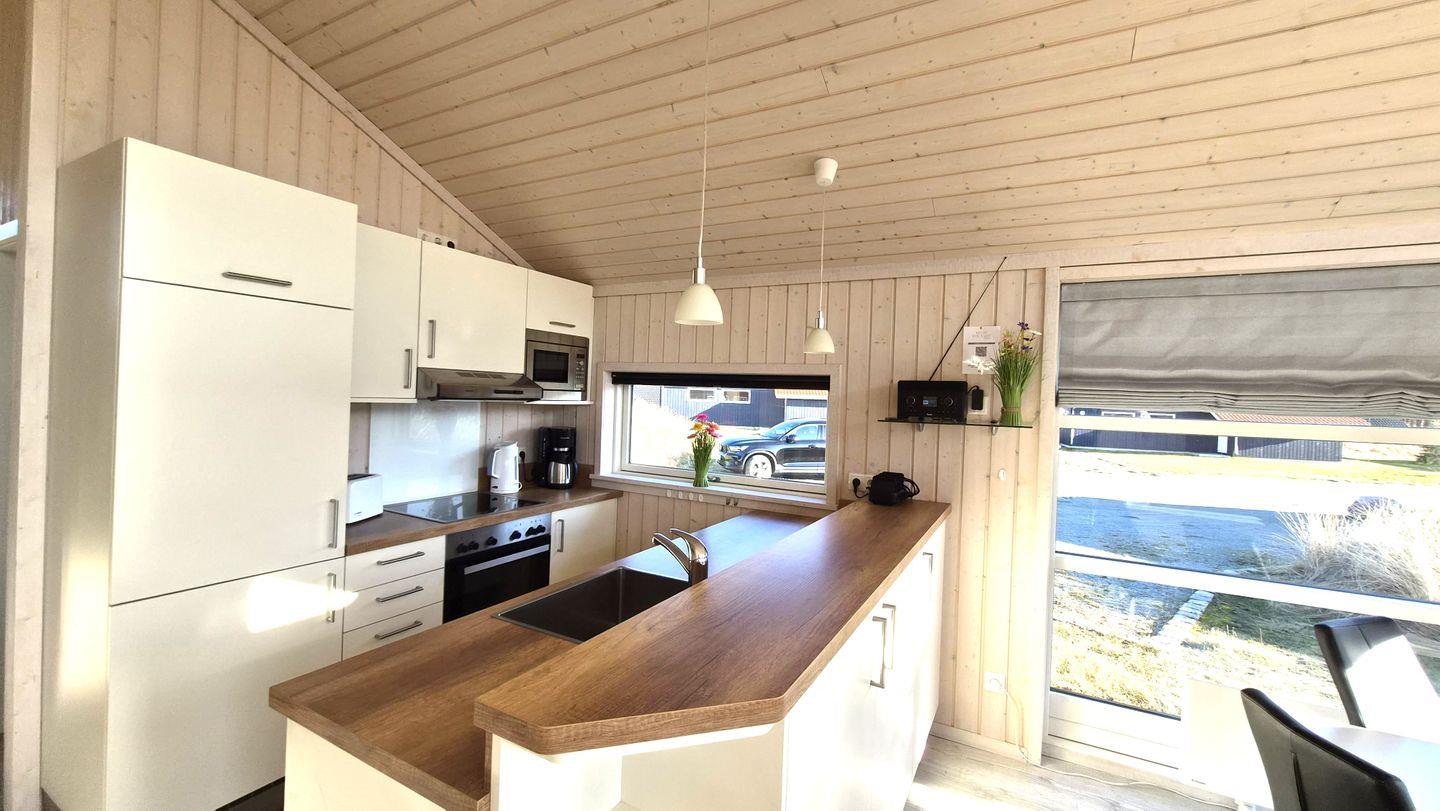 Das skandinavisch eingerichtete 79m² große Ferienhaus bietet Platz für bis zu 8 Personen und zwei Hunde. Das Ferienhaus ist geräumig, hell und geschmackvoll gestaltet, große Fenster sorgen für viel Licht und eine angenehme Wohnatmosphäre.