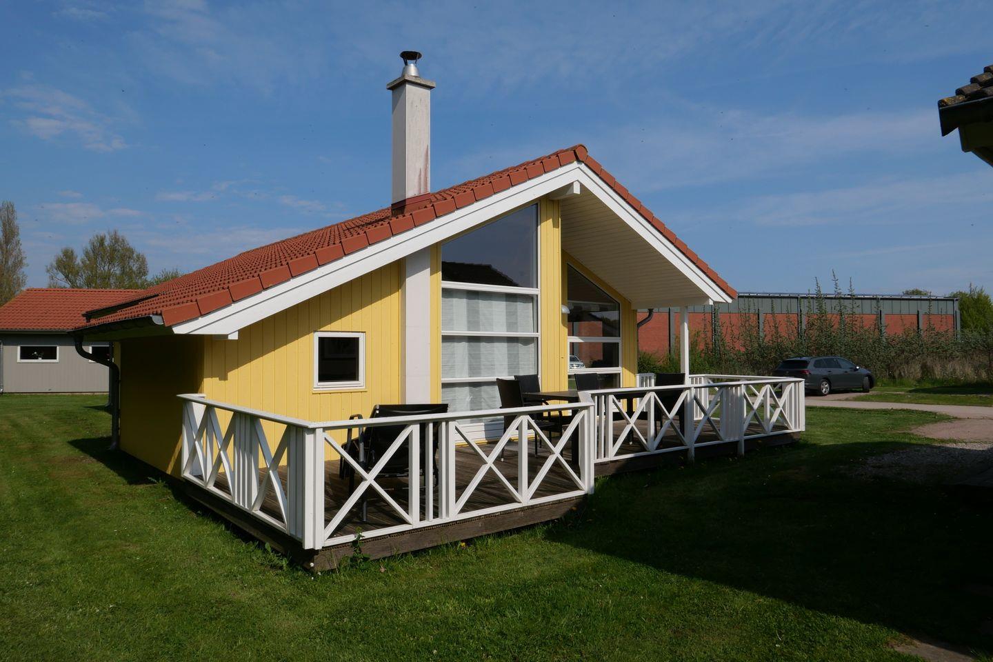 Bitte beachten Sie: Manche Häuser verfügen über ein Geländer um die Terrasse herum, andere nicht. Bei den Außen- und Innenbildern handelt es sich um Modellbilder unterschiedlicher Ferienhäuser.