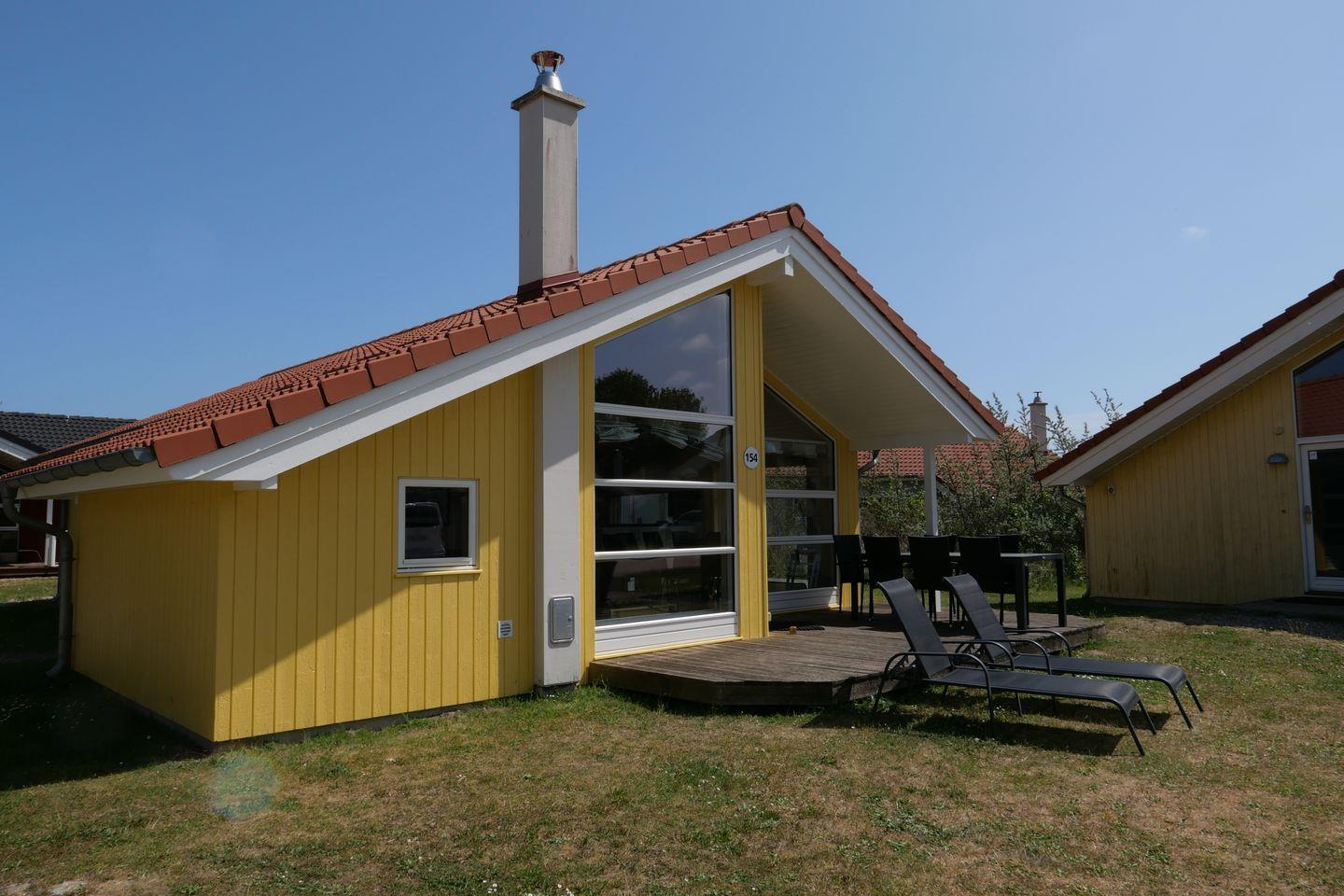 Bitte beachten Sie: Manche Häuser verfügen über ein Geländer um die Terrasse herum, andere nicht. Bei den Außen- und Innenbildern handelt es sich um Modellbilder unterschiedlicher Ferienhäuser.