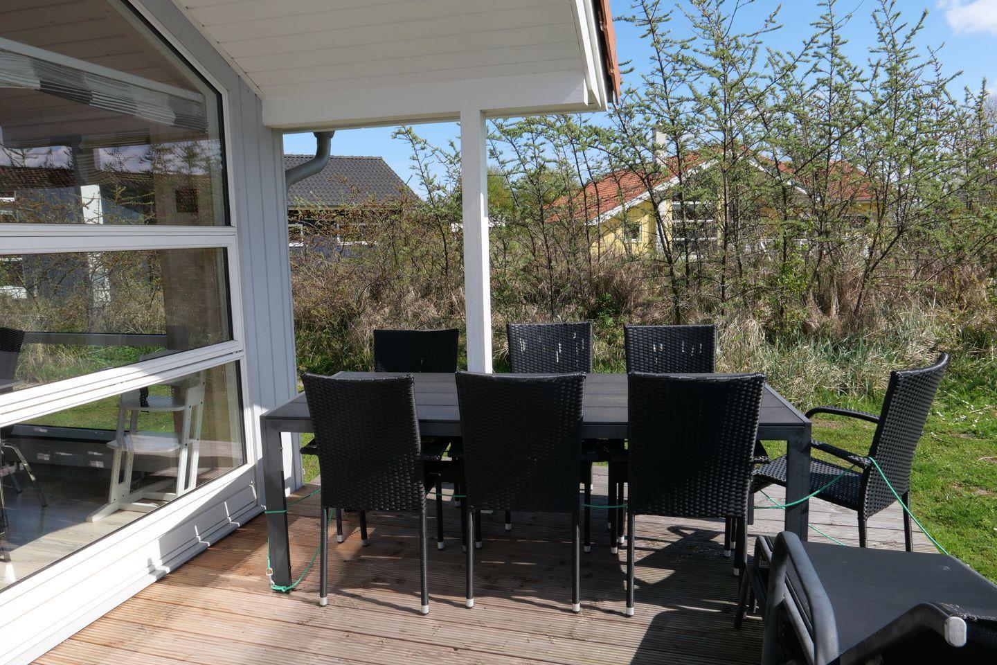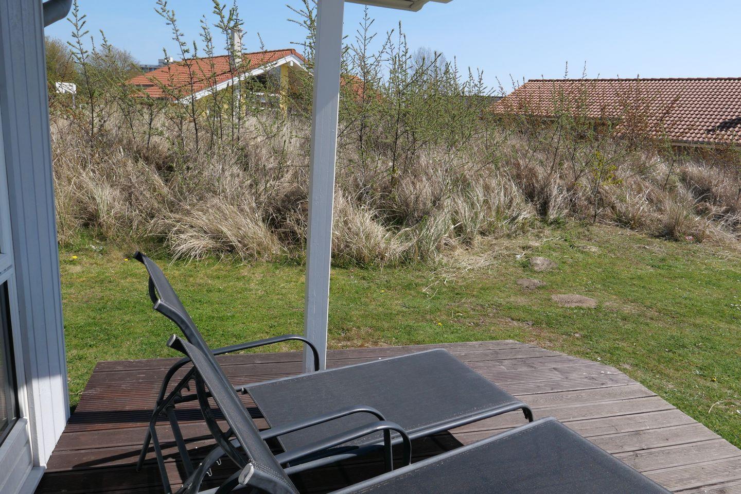 Vom Wohnbereich aus haben Sie Zugang zur teils überdachten, mit Gartentisch und Stühlen möblierten Terrasse, auf der Sie die langen Sommerabende genießen können. 2 Sonnenliegen stehen Ihnen ebenfalls zur freien Verfügung.