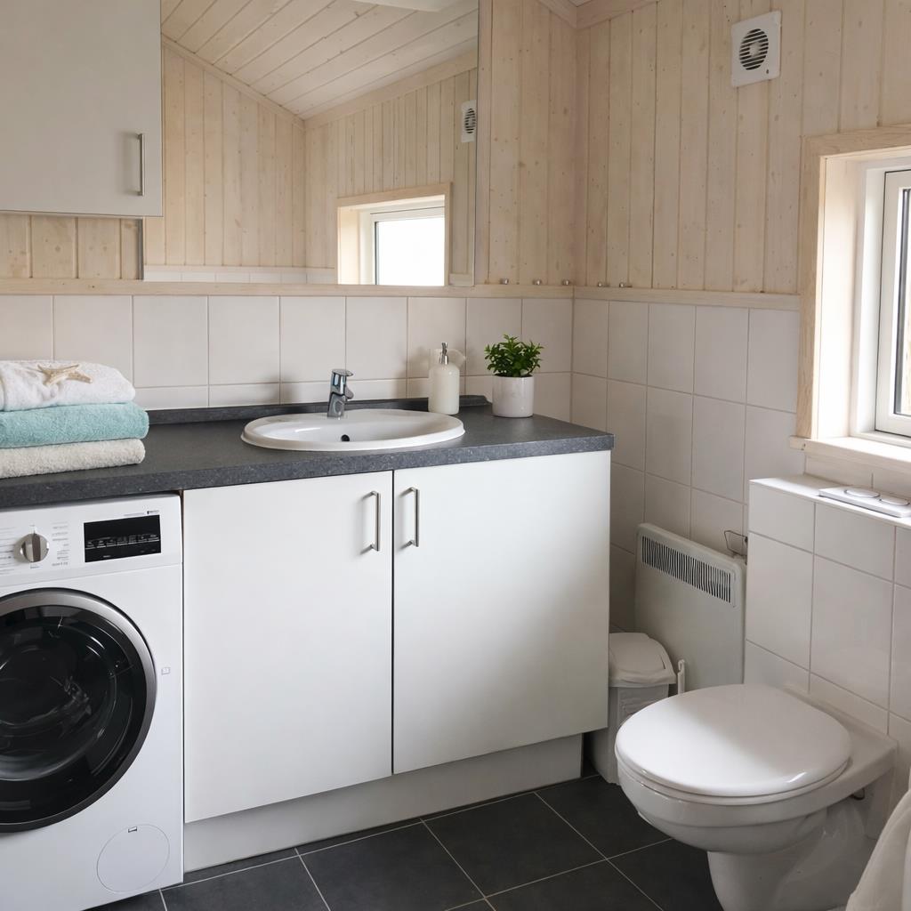 Die hochwertige Ausstattung mit zwei Duschbädern, offener Küche, großem Esstisch, Hotel-TV und einer komfortablen Eckcouch sorgt für ein behagliches Wohngefühl. Sauna und Kaminofen machen das Haus zu einem Ort für Wellness. Viel Tageslicht, helle Holzinnenwände, klare Formen und Naturfarben tragen zu einem nordischen Lebensgefühl bei.