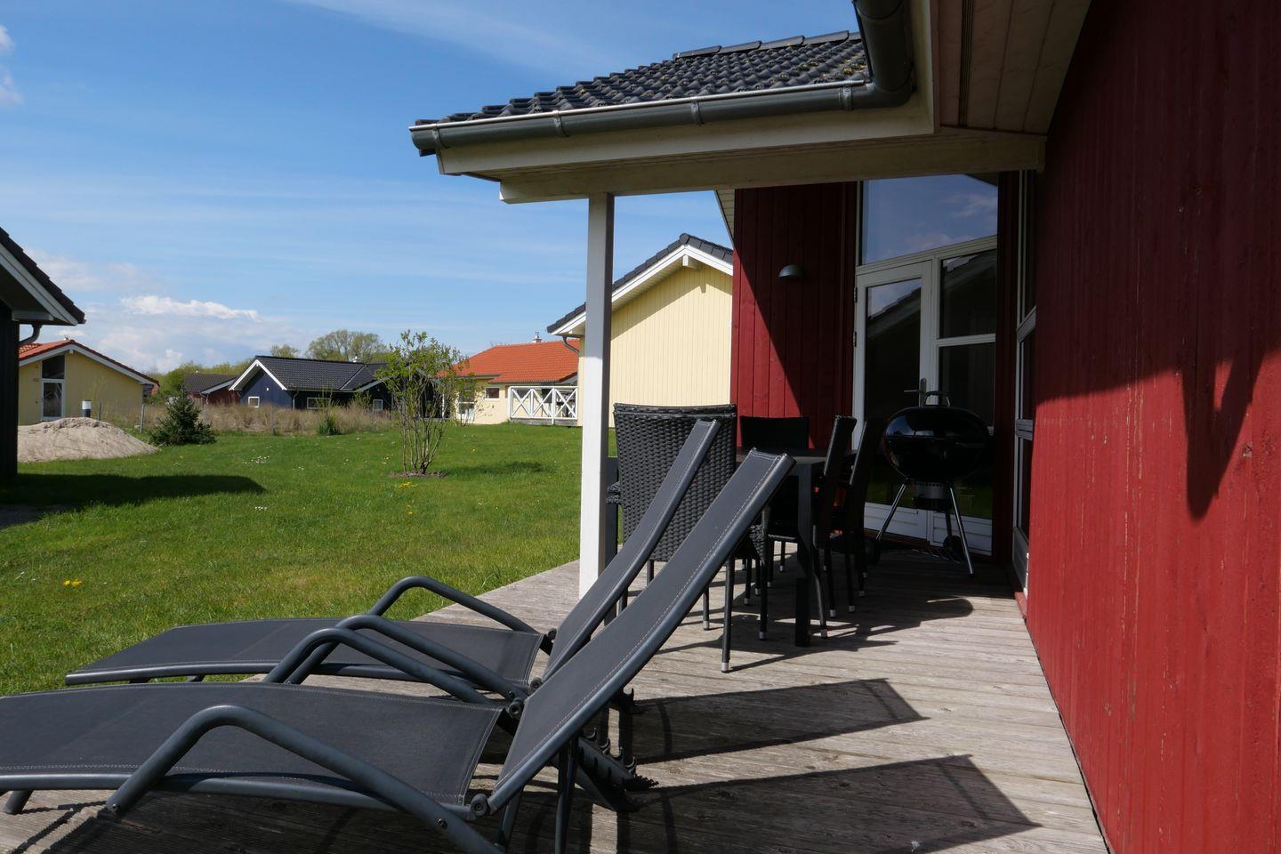 Skandinavisches Ferienhaus nahe Strand in Großenbrode mit Sauna, Kamin und großer Terrasse für erholsamen Urlaub.
