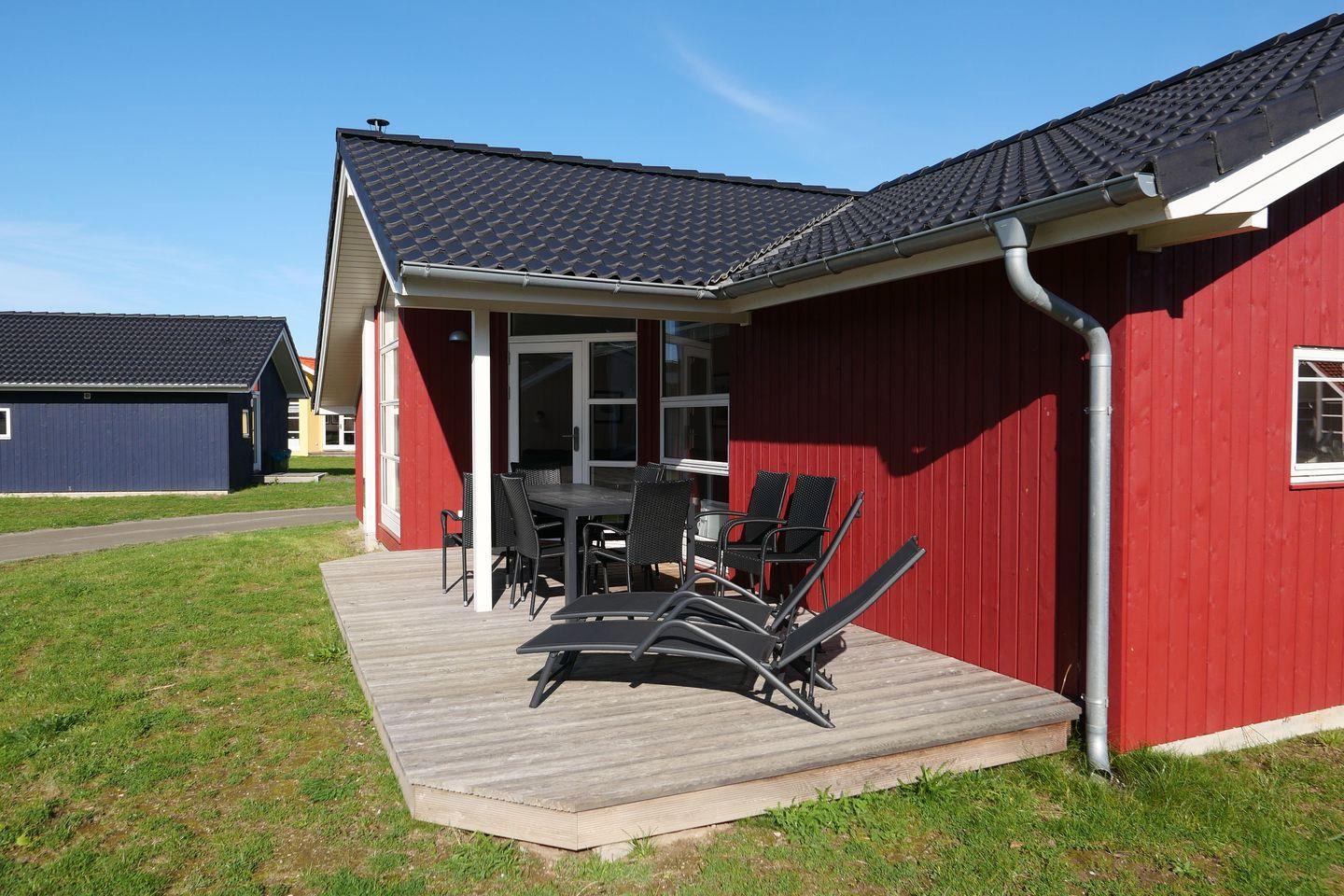 Vom Wohnbereich aus haben Sie Zugang zur teils überdachten, mit Gartentisch und Stühlen möblierten Terrasse, auf der Sie die langen Sommerabende genießen können. 2 Sonnenliegen stehen Ihnen ebenfalls zur freien Verfügung.