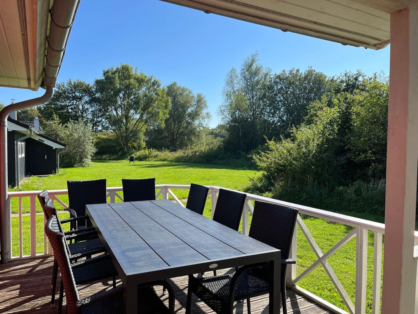 Vom Wohnbereich aus haben Sie Zugang zur teils überdachten, mit Gartentisch und Stühlen möblierten Terrasse, auf der Sie die langen Sommerabende genießen können. 2 Sonnenliegen stehen Ihnen ebenfalls zur freien Verfügung.