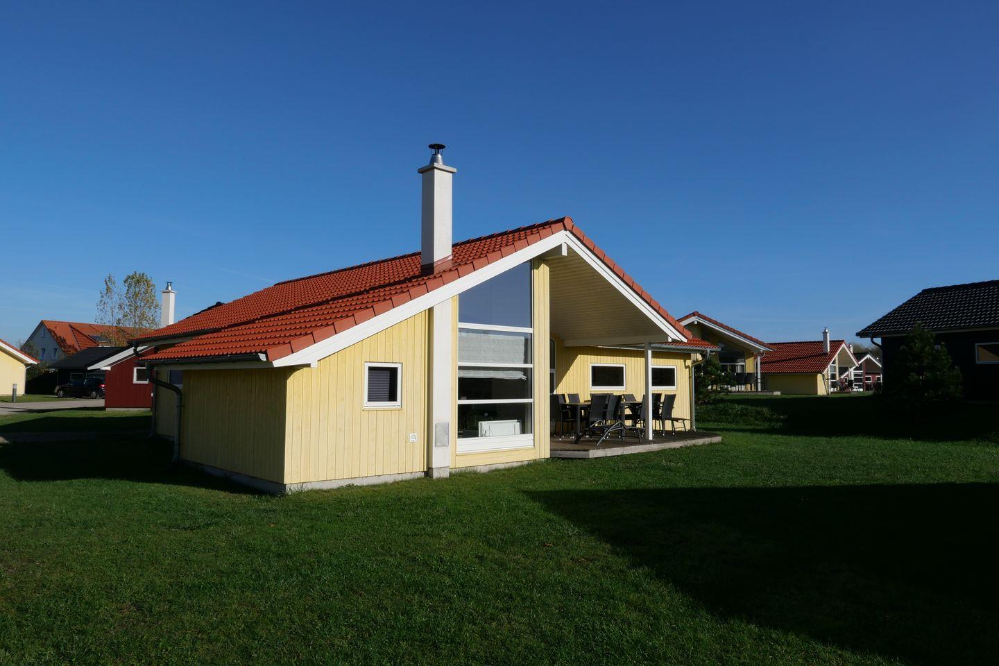 Bitte beachten Sie: Manche Häuser verfügen über ein Geländer um die Terrasse herum, andere nicht. Bei den Außen- und Innenbildern handelt es sich um Modellbilder unterschiedlicher Ferienhäuser.