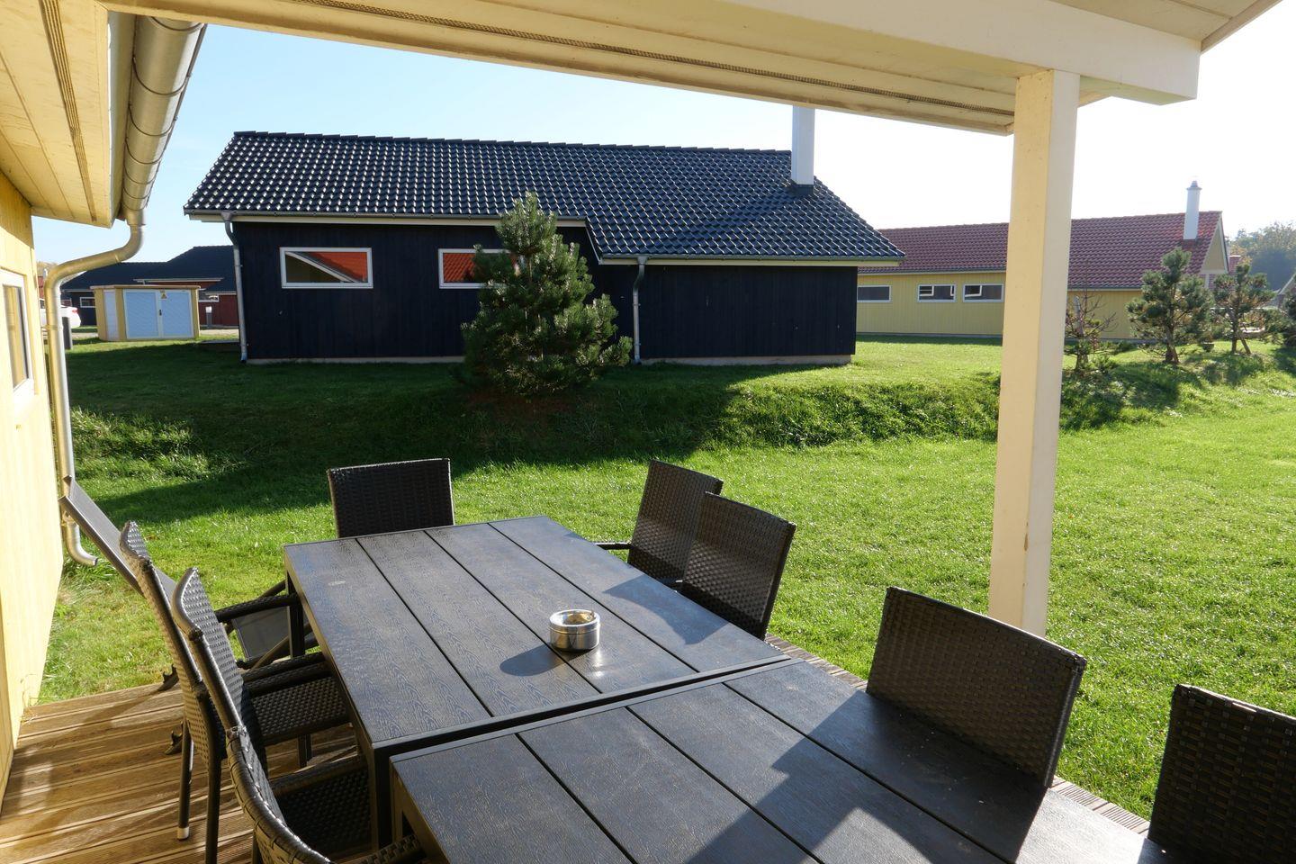 Im Wohnbereich befinden sich der Kaminofen, das Sat-TV, ein DVD-Player bzw. Blue-Ray Player, eine Stereoanlage mit Radio. Vom Wohnbereich aus haben Sie Zugang zur teils überdachten, mit großem Gartentisch und Stühlen möblierten Terrasse, auf der Sie die langen Sommerabende genießen können. 2 Sonnenliegen stehen Ihnen ebenfalls zur freien Verfügung.