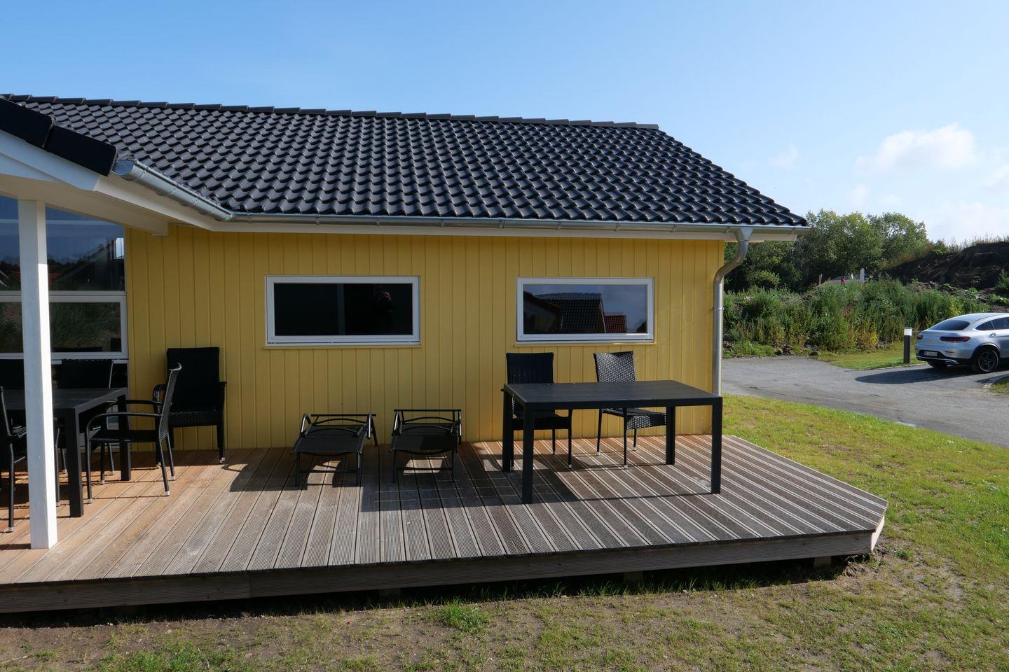 Bitte beachten Sie: Manche Häuser verfügen über ein Geländer um die Terrasse herum, andere nicht. Bei den Außen- und Innenbildern handelt es sich um Modellbilder unterschiedlicher Ferienhäuser.