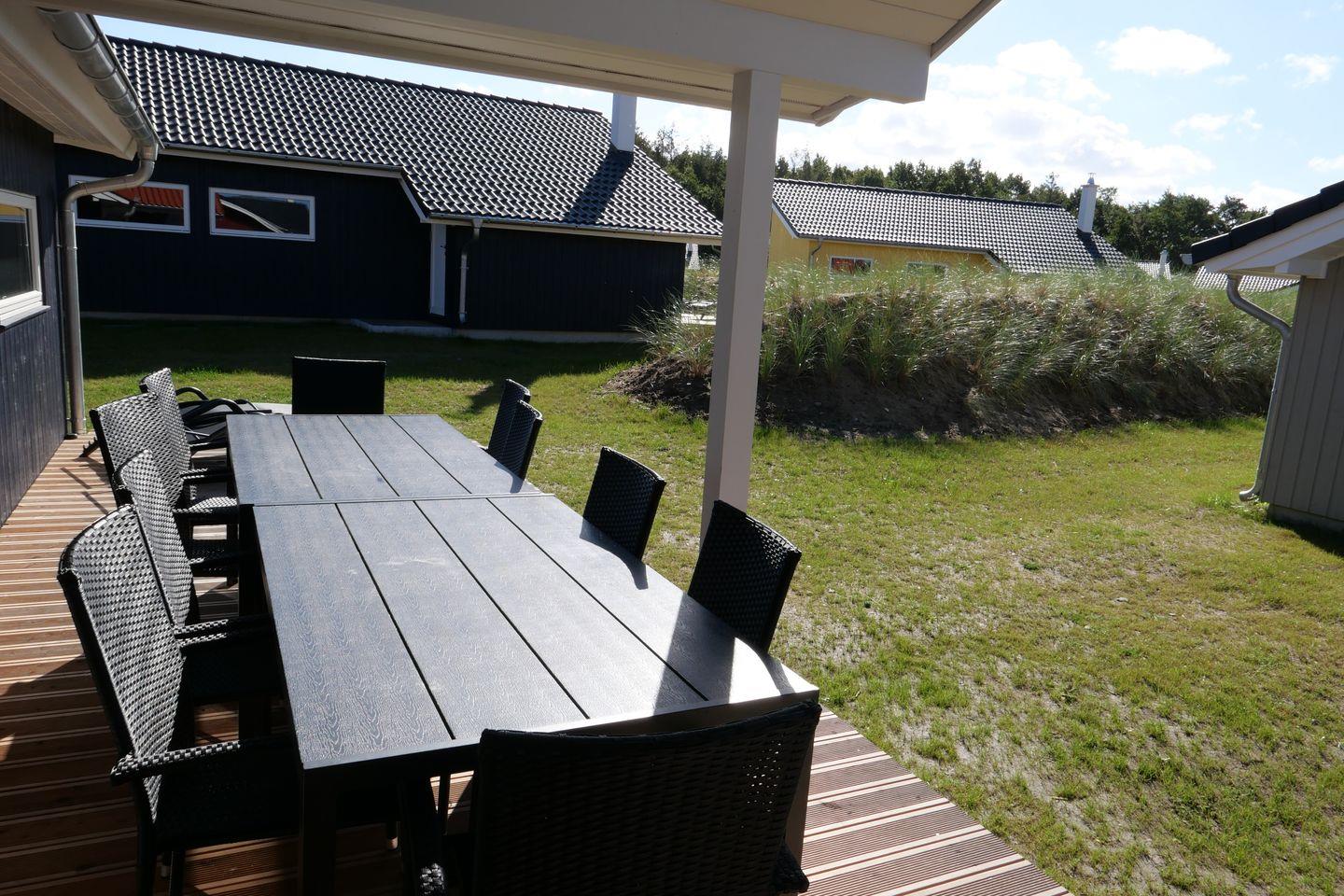 Vom Wohnbereich aus haben Sie Zugang zur teils überdachten, mit großem Gartentisch und Stühlen möblierten Terrasse, auf der Sie die langen Sommerabende genießen können. 2 Sonnenliegen stehen Ihnen ebenfalls zur freien Verfügung.