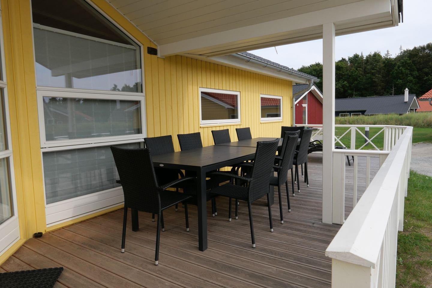 Vom Wohnbereich aus haben Sie Zugang zur teils überdachten, mit großem Gartentisch und Stühlen möblierten Terrasse, auf der Sie die langen Sommerabende genießen können. 2 Sonnenliegen stehen Ihnen ebenfalls zur freien Verfügung.