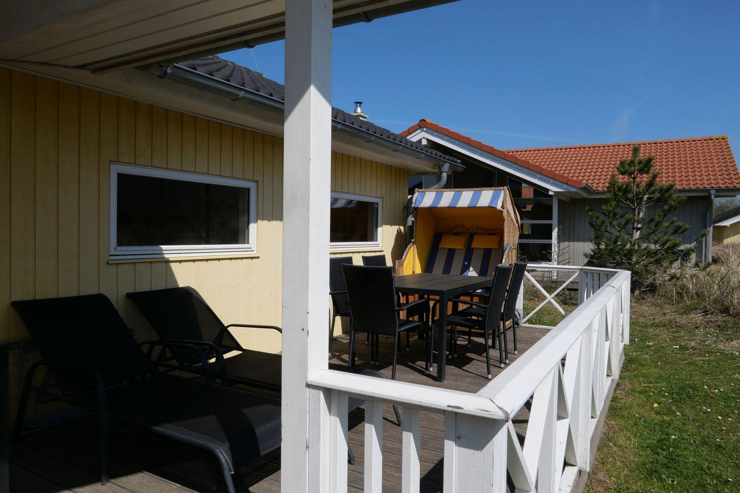 Bitte beachten Sie: Manche Häuser verfügen über ein Geländer um die Terrasse herum, andere nicht. Bei den Außen- und Innenbildern handelt es sich um Modellbilder unterschiedlicher Ferienhäuser.