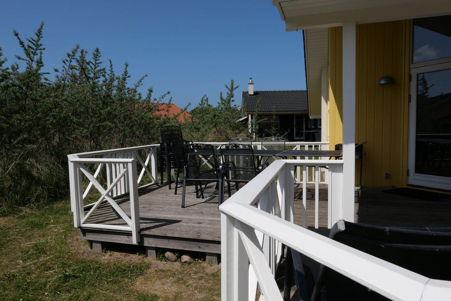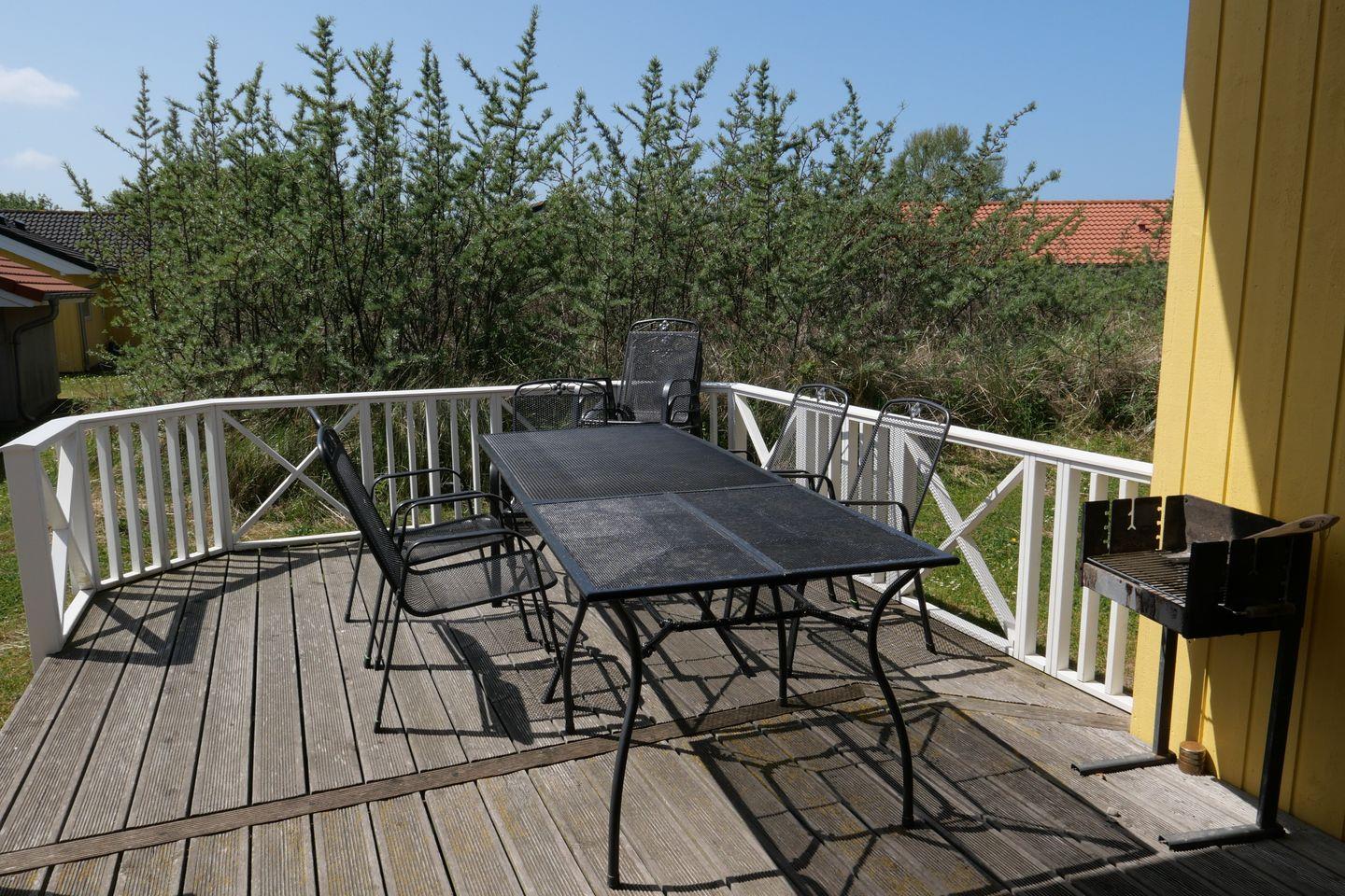 Vom Wohnbereich aus haben Sie Zugang zur teils überdachten, mit großem Gartentisch und Stühlen möblierten Terrasse, auf der Sie die langen Sommerabende genießen können. 2 Sonnenliegen stehen Ihnen ebenfalls zur freien Verfügung.