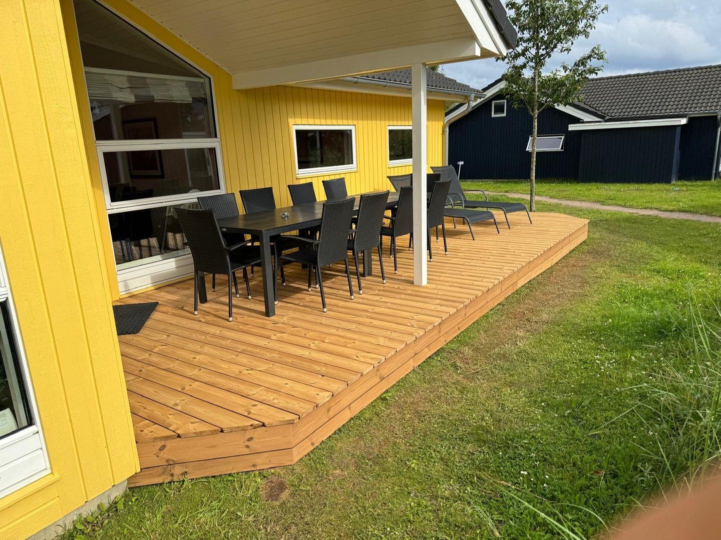 Bitte beachten Sie: Manche Häuser verfügen über ein Geländer um die Terrasse herum, andere nicht. Bei den Außen- und Innenbildern handelt es sich um Modellbilder unterschiedlicher Ferienhäuser.