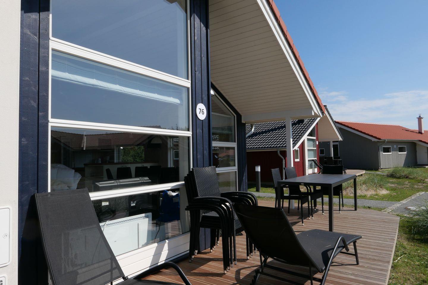 Bitte beachten Sie: Manche Häuser verfügen über ein Geländer um die Terrasse herum, andere nicht. Bei den Außen- und Innenbildern handelt es sich um Modellbilder unterschiedlicher Ferienhäuser.