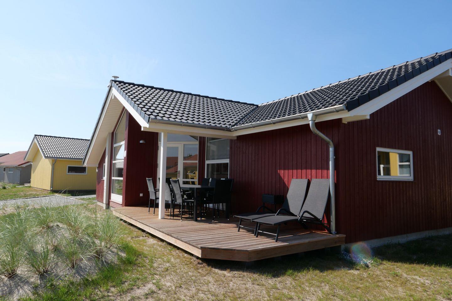 Bitte beachten Sie: Manche Häuser verfügen über ein Geländer um die Terrasse herum, andere nicht. Bei den Außen- und Innenbildern handelt es sich um Modellbilder unterschiedlicher Ferienhäuser.