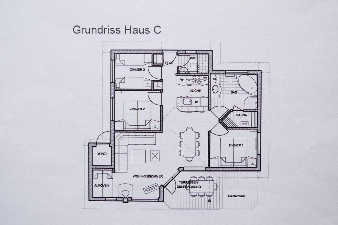 Bitte beachten Sie: Manche Häuser verfügen über ein Geländer um die Terrasse herum, andere nicht. Bei den Außen- und Innenbildern handelt es sich um Modellbilder unterschiedlicher Ferienhäuser.