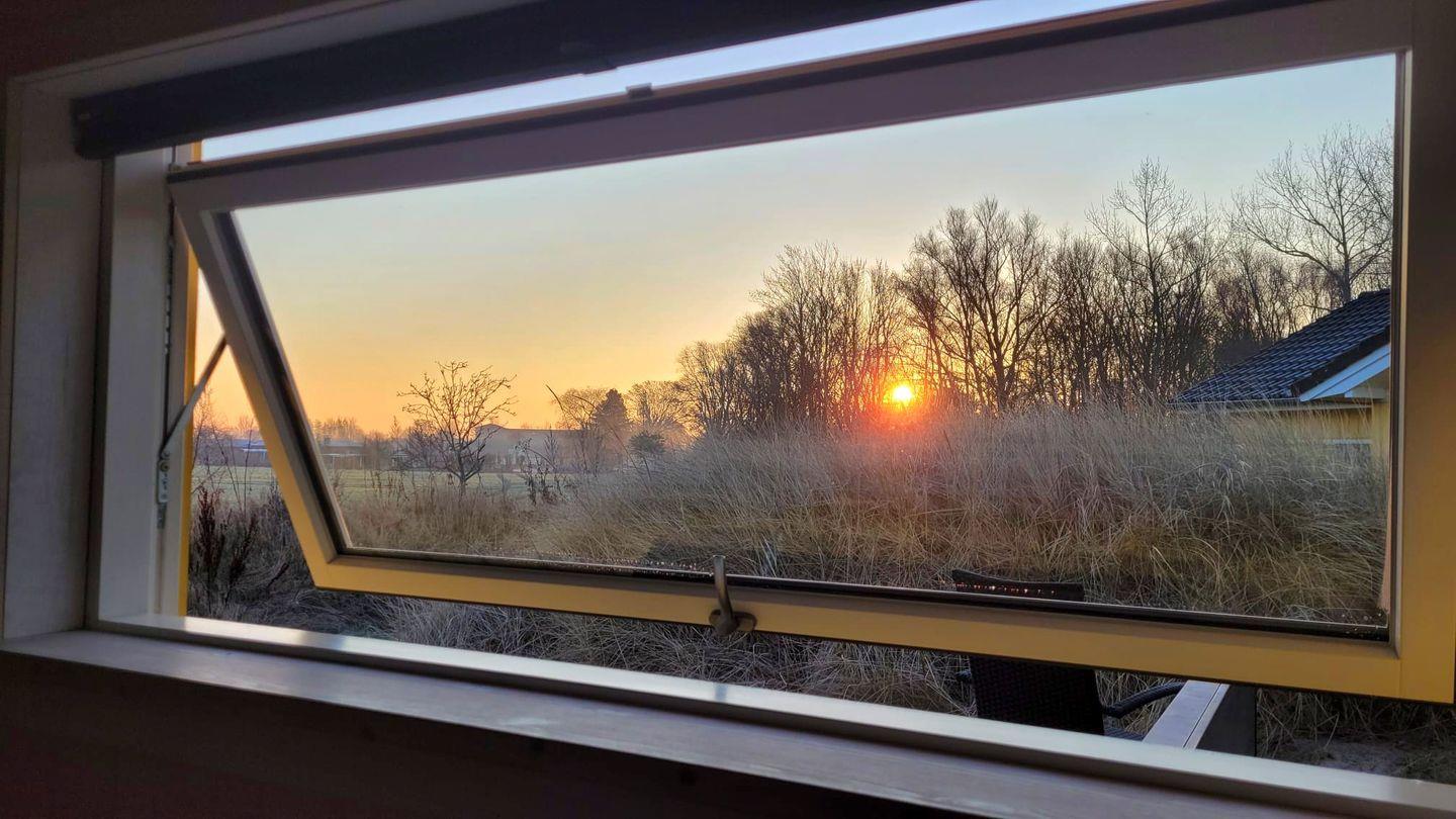 Die 4 Schlafzimmer (zwei Schlafzimmer mit Doppelbett sowie zwei Schlafzimmer mit Einzelbetten) liegen räumlich versetzt. Von zwei Schlafzimmern aus hat man einen freien Blick auf den Sonnenaufgang. Im Alkoven befinden sich 2 zusätzliche Schlafplätze mit Doppelbett, die sehr beliebt bei den jüngeren Familienmitgliedern sind. Ein Kinderbett und ein Kinderhochstuhl befinden sich im Haus. Der zentrale Wohn- und Küchenbereich bildet den gemütlichen Mittelpunkt für alle und sorgt für ein großzügiges Wohngefühl.