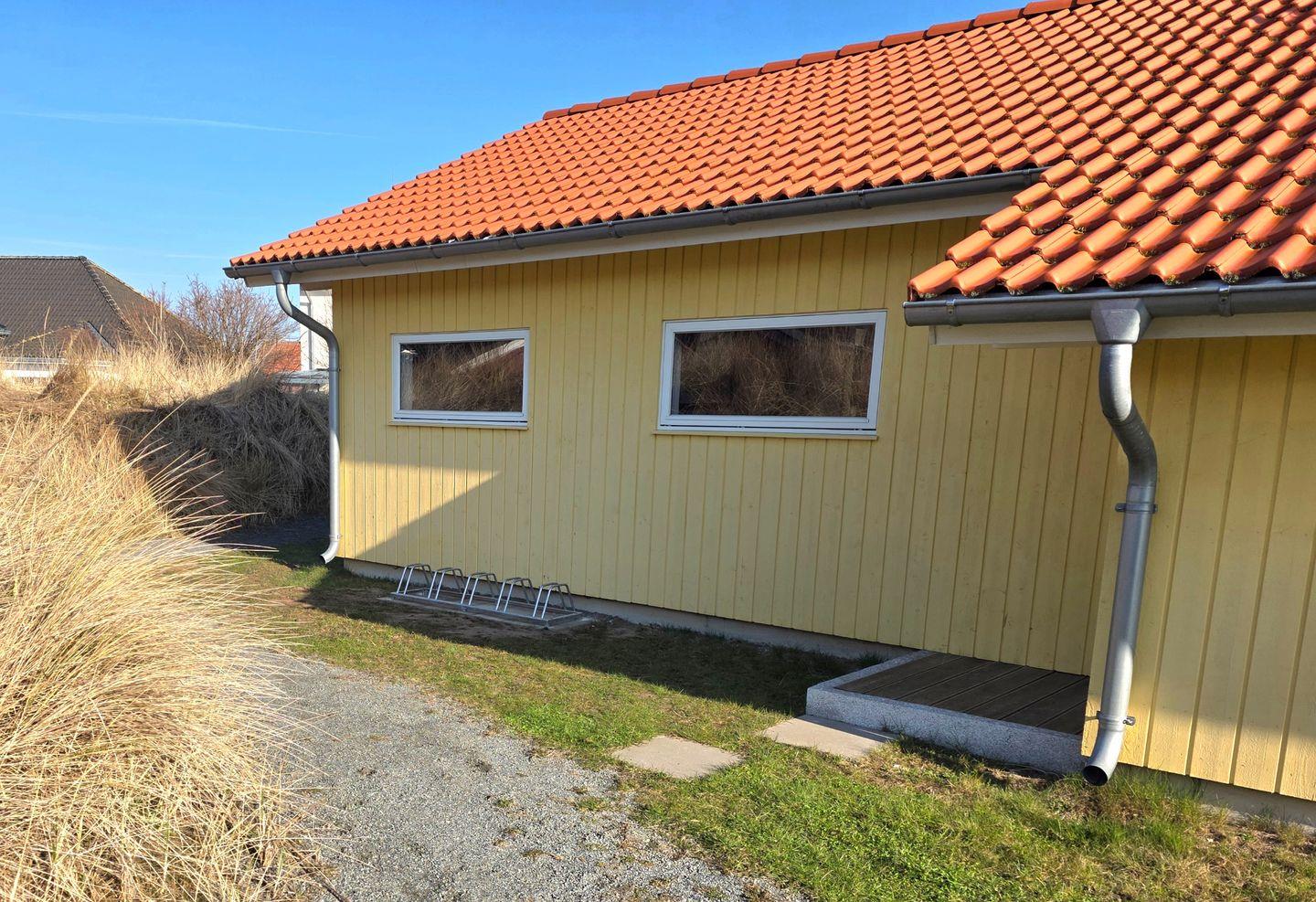 Neben dem Haus befindet sich ein Fahrradständer für bis zu 5 Fahrräder. Dieser ist von der Strasse nicht einsehbar, sodass Ihre Fahrräder dort geschützt stehen.