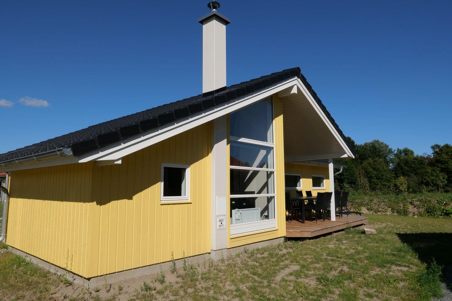 Bitte beachten Sie: Manche Häuser verfügen über ein Geländer um die Terrasse herum, andere nicht. Bei den Außen- und Innenbildern handelt es sich um Modellbilder unterschiedlicher Ferienhäuser.