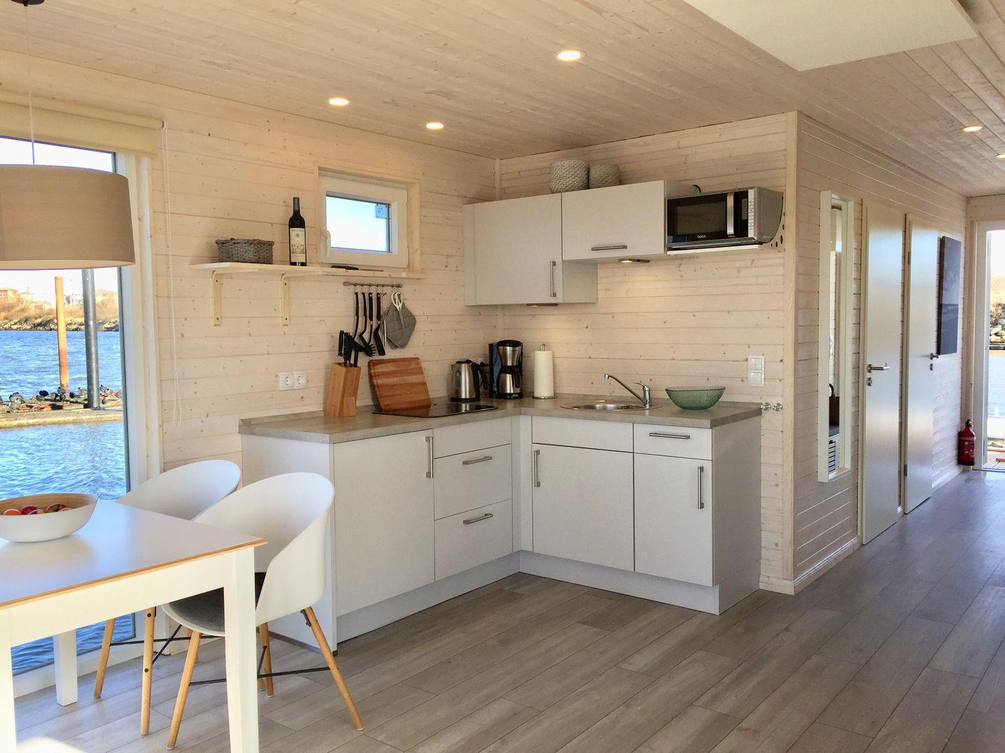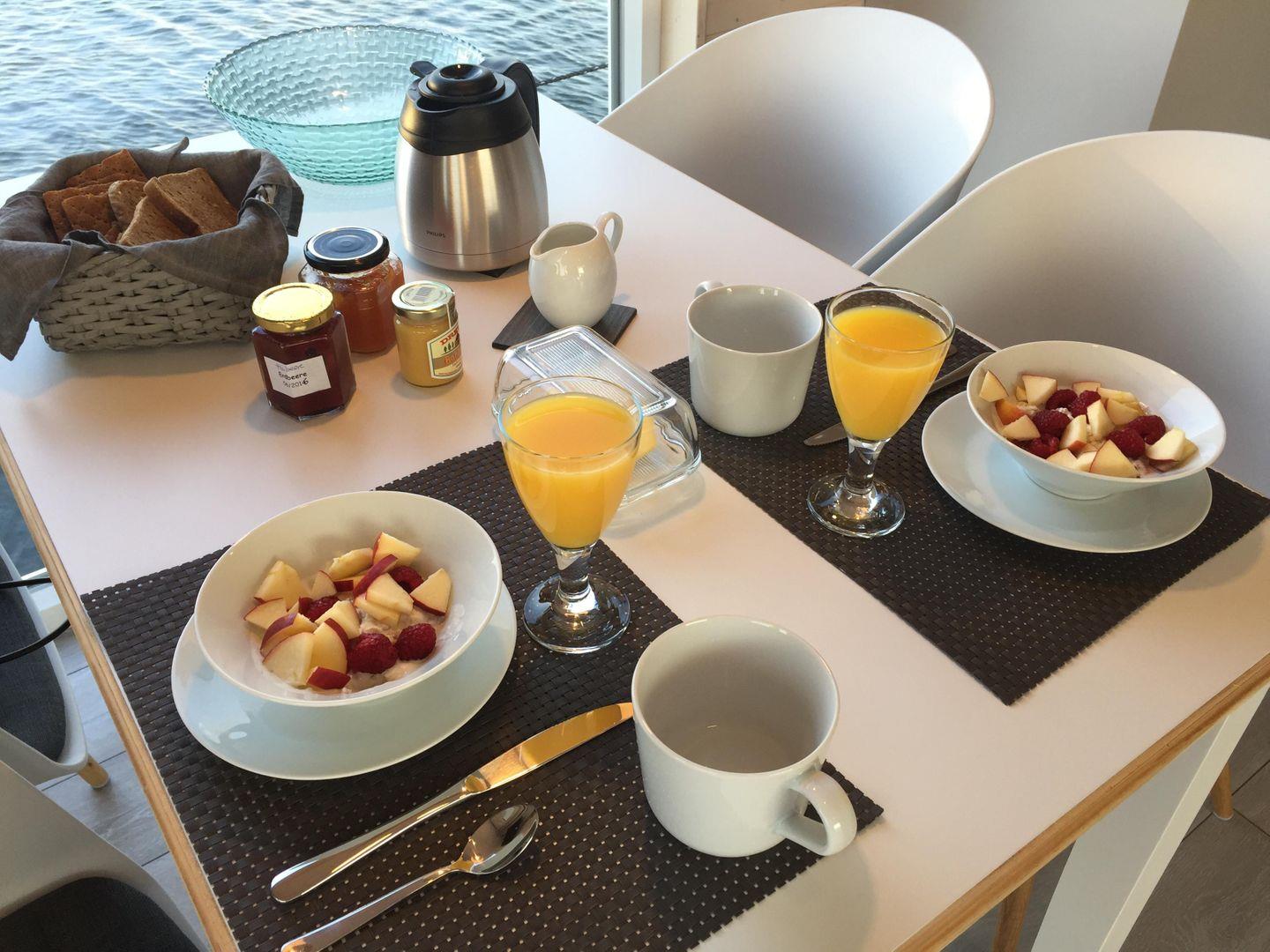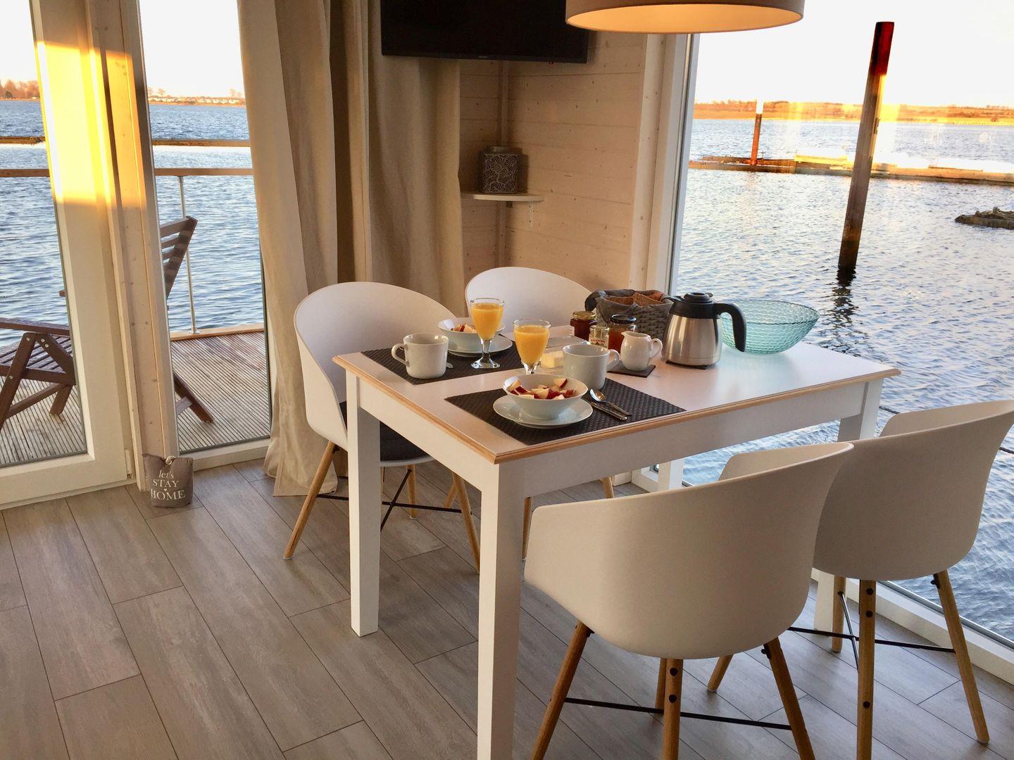 Zwei Terrassen und eine großzügige Dachterrasse laden zum Entspannen ein, während große Fensterfronten für ein helles, freundliches Ambiente sorgen. WLAN, TV und weitere Annehmlichkeiten stehen selbstverständlich zur Verfügung – perfekt für eine erholsame Auszeit auf dem Wasser.