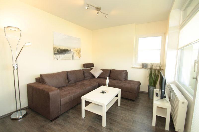 Im kuscheligen Wohnzimmer befindet sich eine große, bequeme Couch die aufgrund ihrer Schlaffunktion auch als Schlafgelegenheit genutzt werden kann. Plissees sorgen anden großen Fensterfront für Privatsphäre. Ein Flachbildfernseher sowie ein W-Lan-Zugang sorgt bei Bedarf für Ihre Unterhaltung.