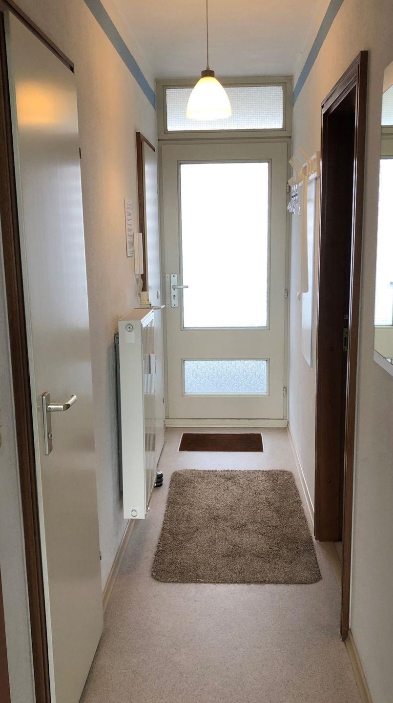 Die kleine, maritim eingerichtete Wohnung im ersten Stock des dreistöckigen Gebäudes bietet Platz für bis zu 2 Erwachsene und ein Kind.