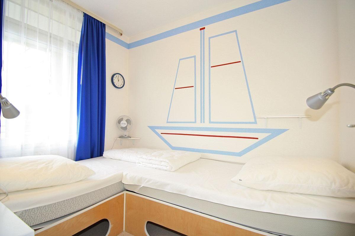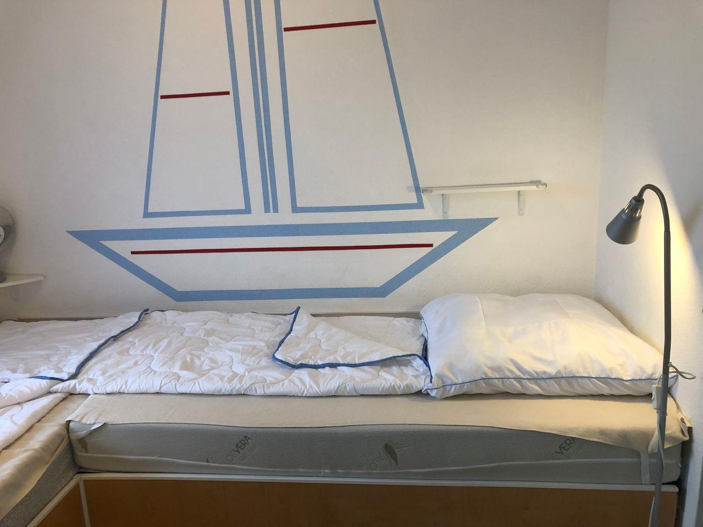 Im separaten Schlafzimmer mit Fenster finden Sie zwei über Eck stehende Einzelbetten (je 90cm*190cm) und ein Kleiderschrank.
