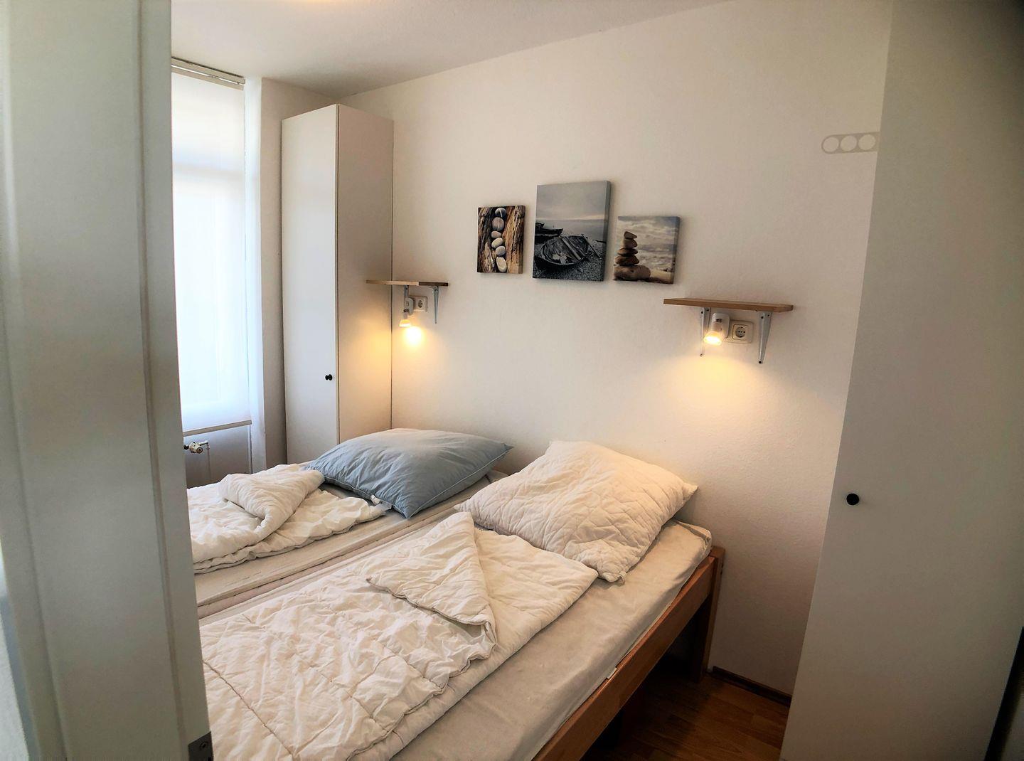 In dem kuscheligen Schlafzimmer stehen Ihnen ein Doppelbett (2*90*190 cm) sowie 2 Kleiderschränke zur Verfügung. Das große Fenster kann durch die elektrischen Außenrollläden komplett abgedunkelt werden.