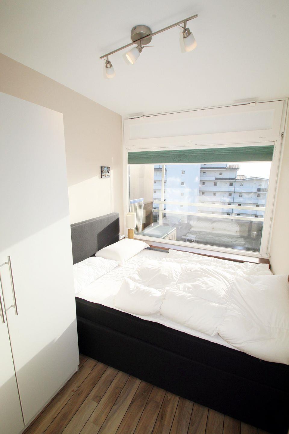 Von dem gemütlichen Boxspringbett (140*200) im separaten Schlafzimmer können Sie aus dem großen Fenster direkt am Bett noch ein Stück Meerblick genießen. Für Ihre Privatsphäre sorgt ein Verdunklungsrollo. Der geräumige Kleiderschrank bietet Ihrer Urlaubsgarderobe jede Menge Platz.