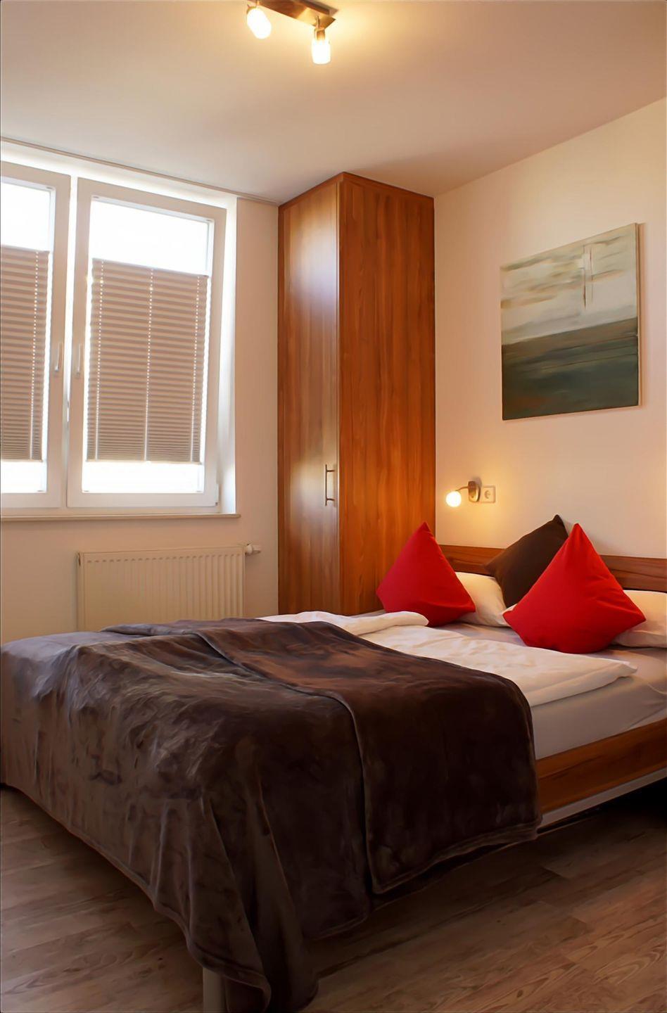 Die Ferienwohnung verfügt über zwei separate Schlafzimmer mit je einem Doppelbett. In einem der Schlafzimmer befindet sich ein weiterer Flachbildfernseher. Für einen erholsamen Schlaf sind die Betten in diesem Schlafzimmer mit hochwertigen Bandscheibenmatratzen ausgestattet. Die Fenster in beiden Schlafzimmern sind zusätzlich zu den Vorhängen mit Verdunklungs-Plissees ausgestattet.