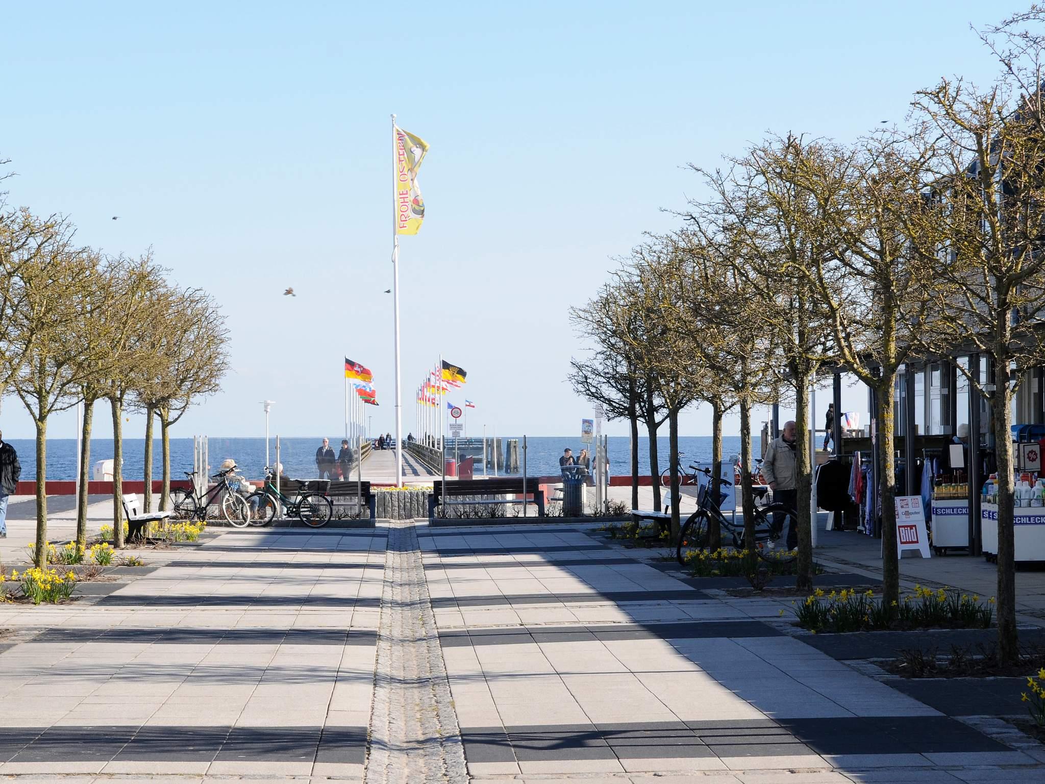 Mit nur ca. 150 m zum Strand bietet die Wohnung einen hervorragend Ausgangspunkt für schöne Strandferien sowie Möglichkeiten, die landschaftlich reizvolle Umgebung mit zahlreichen Sehenswürdigkeiten zu erforschen. Ganz in der Nähe befinden sich auch die Fehmarnsundbrücke und der bekannte und beliebte Freizeitpark Hansapark. Für den Strandbesuch mit Hunden eignet sich der Weststrand, wo Sie die Möglichkeit haben, Ihren Hund an der Leine mitzuführen. Für den freien Auslauf ist eine gesonderte Fläche „Am Kai“ zur Verfügung gestellt.