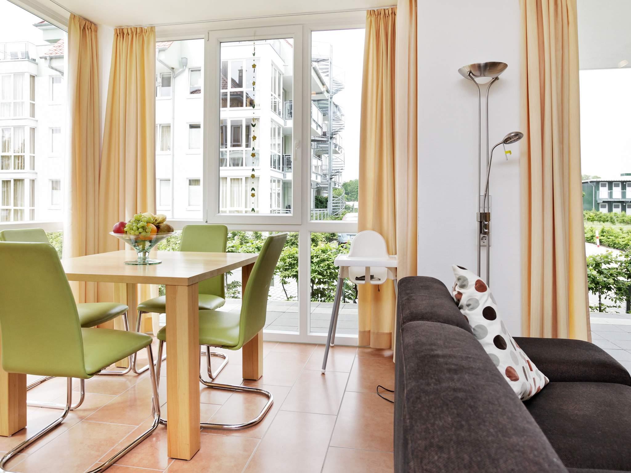 Im Erdgeschoss liegt diese schöne Ferienwohnung im Haus Meerblick im Strandpark Großenbrode – in unmittelbarer Nähe vom Strand. Es erwartet Sie eine ansprechend eingerichtete und gut ausgestattete Ferienwohnung mit 57 m² Grundfläche mit insgesamt zwei Schlafzimmern, eins davon mit einem Doppelbett und das andere mit einem Etagenbett für 2 Personen. Auch ein Hochstuhl und ein Babyreisebett sowie eine Waschmaschine und ein Trockner sind vorhanden.