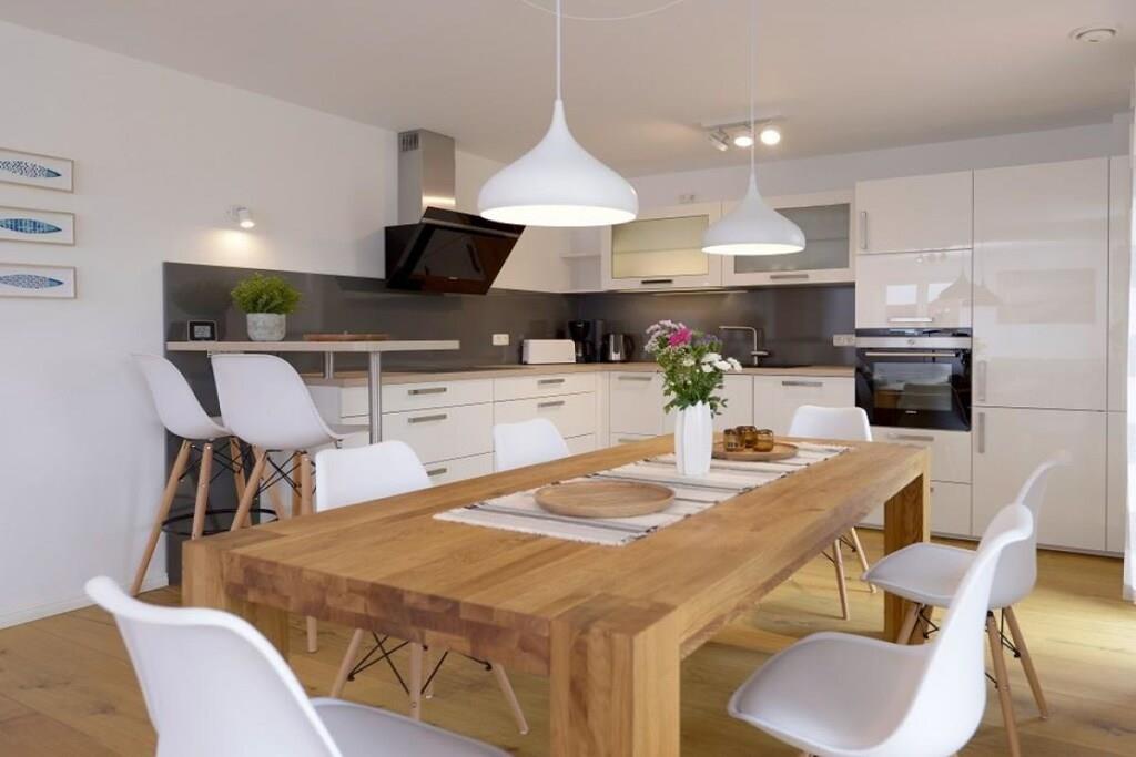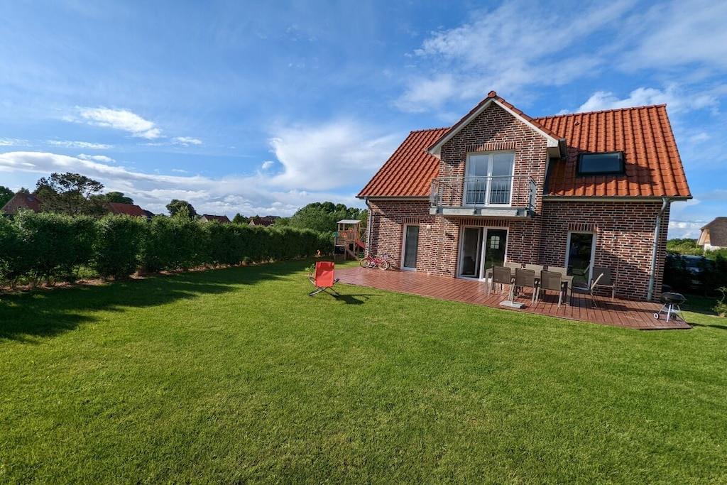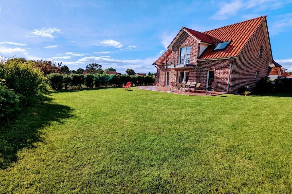 Genießen Sie einen einzigartigen Urlaub in diesem wundervollen Ferienhaus in Alleinlage mit privatem Wellness-Bereich. Zum Strand kann man laufen, etwas über 10 Minuten. Das Ferienhaus bietet 4 Schlafzimmer, 2 Badezimmer und einen großen Wohn-/Essbereich. Etwas ganz besonderes ist der großzügig eingerichtete Wellness-Bereich mit Sauna, separatem Dampfbad, Rain-Dance Dusche und Kneippschlauch im Obergeschoss. Nach der Sauna können Sie den nach Süd/West gerichteten Balkon betreten, abkühlen und den weiten Blick über die Natur genießen. Entspannen sich auf der bereitgestellten Relaxliege bei Fernsicht und entspannter Musik. Die exklusiv eingerichtete Küche, welche direkt an den Essbereich grenzt, ist modern und hochwertig ausgestattet (Induktionsherd, Backofen, Geschirrspüler, Kühlschrank). Vom Essbereich haben Sie direkten Zugang zur großen, möblierten Süd/West Terrasse, welche zu entspannten Grillabenden einlädt. Terrasse und Garten liegen in Feldrandlage, durch die Ausrichtung und eine Hecke blickgeschützt, so dass Sie ihren Urlaub in privater Atmosphäre genießen können. Familien mit Kindern können hier einen unbeschwerten Urlaub verleben und sich ausgiebig erholen. Wellness-Liebhaber werden das großzügige Dampfbad und die Sauna genießen. Der Strand und die Restaurants des Schlosshotels liegen nur ca. 800m entfernt. Ein Bollerwagen wird mit vermietet. Neueröffnung seit Frühjahr 2022: Priwall-Promenade "beachbay", 15 Autominuten oder eine Fahrradstunde vom Haus entfernt, mit Bars, Gastronomie, Outdoor & und Indoor-Spielplatz, Laserlabyrinth, Markthalle etc. Besonders empfehlenswert: Backfisch auf der Terrasse von Steffen Hensslers "ahoi" mit hausgemachter Limonade , die Kinder im Blick beim Spielen am Strand. Neu seit Herbst 2021: miniMare in Kalkhorst, 3 Autominuten, Miniaturpark mit aufwendigem Spielplatz, Gatronomie und verschiedenen Aktivitäten. Neu seit Herbst 2020: eigener Spielturm im Garte Neu 2024: Netflix, Magenta TV Fahrradverleih mit Lieferservice an das Haus: für die ganze Familie etwa 120EURO/Woche, für ein Paar etwa 60EURO/Woche, Vermittlung auf Anfrage.