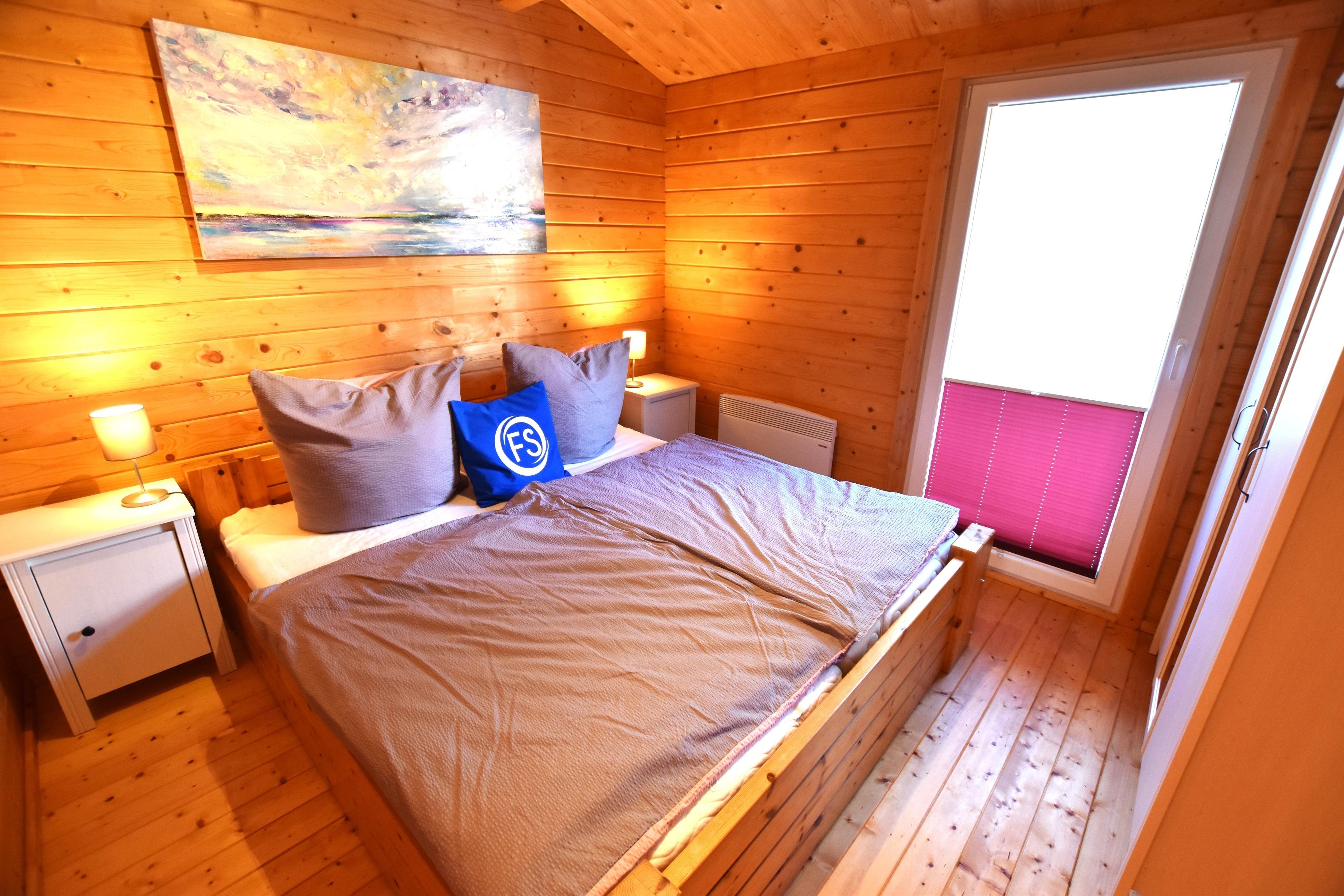 Hier erwartet Sie auf ca. 70 m² ein gemütliches Schwedenhaus mit zwei Schlafzimmern, zwei Bädern, ein Wohn-/Esszimmer mit offener Küche und Zugang zur voll eingezäunten Terrasse für bis zu