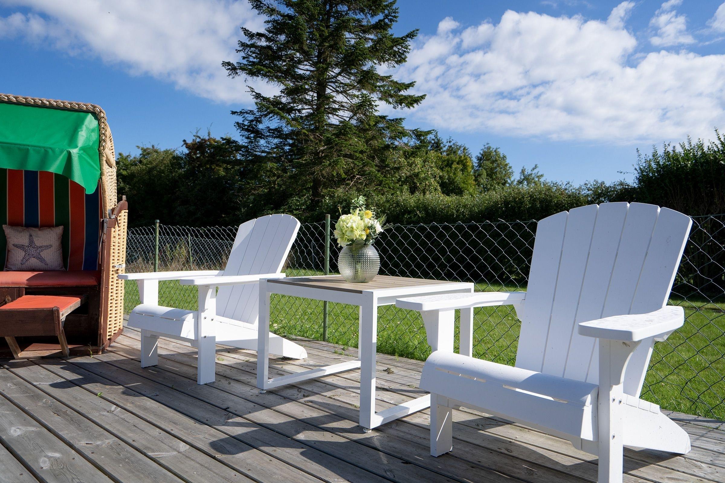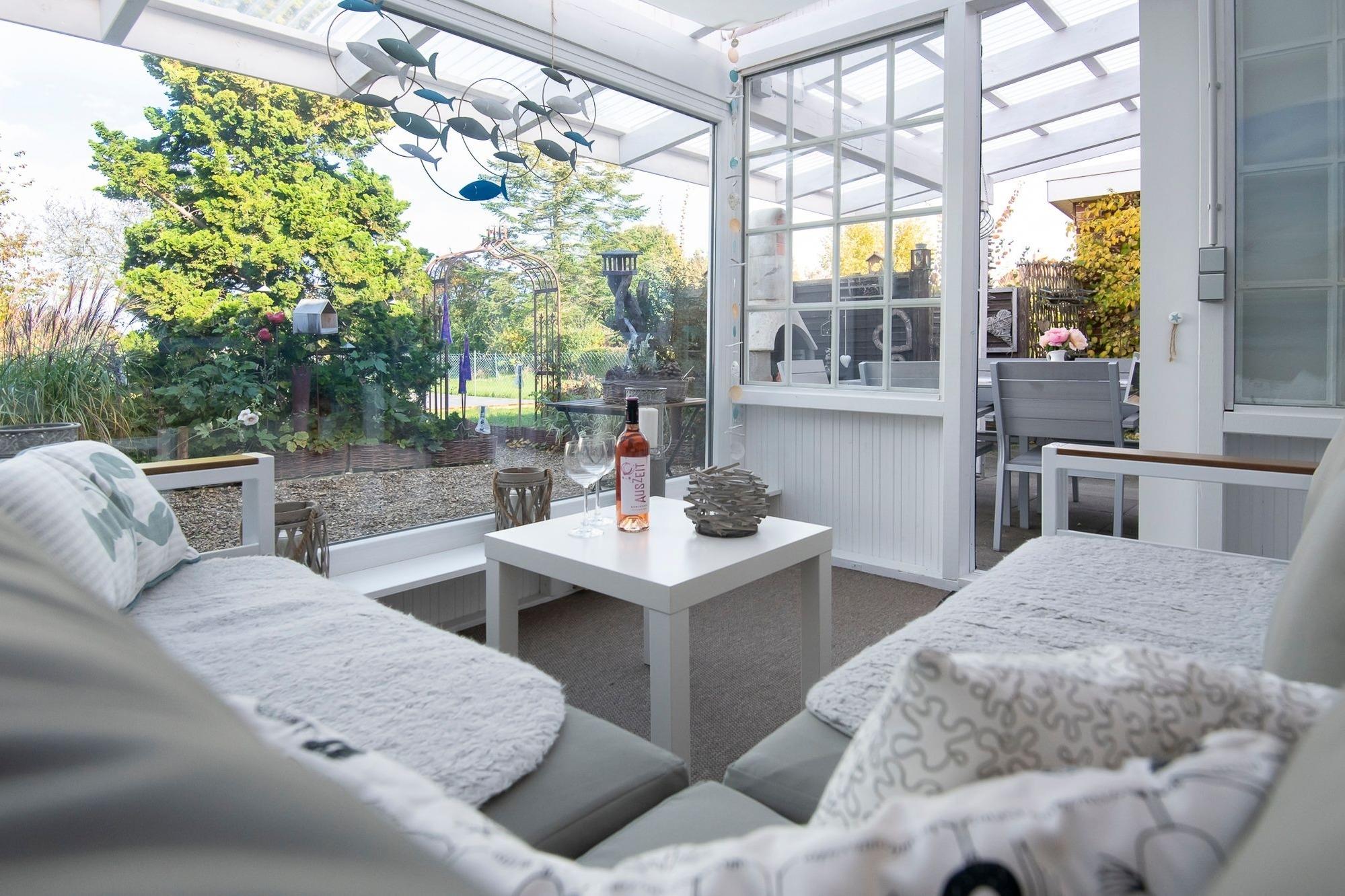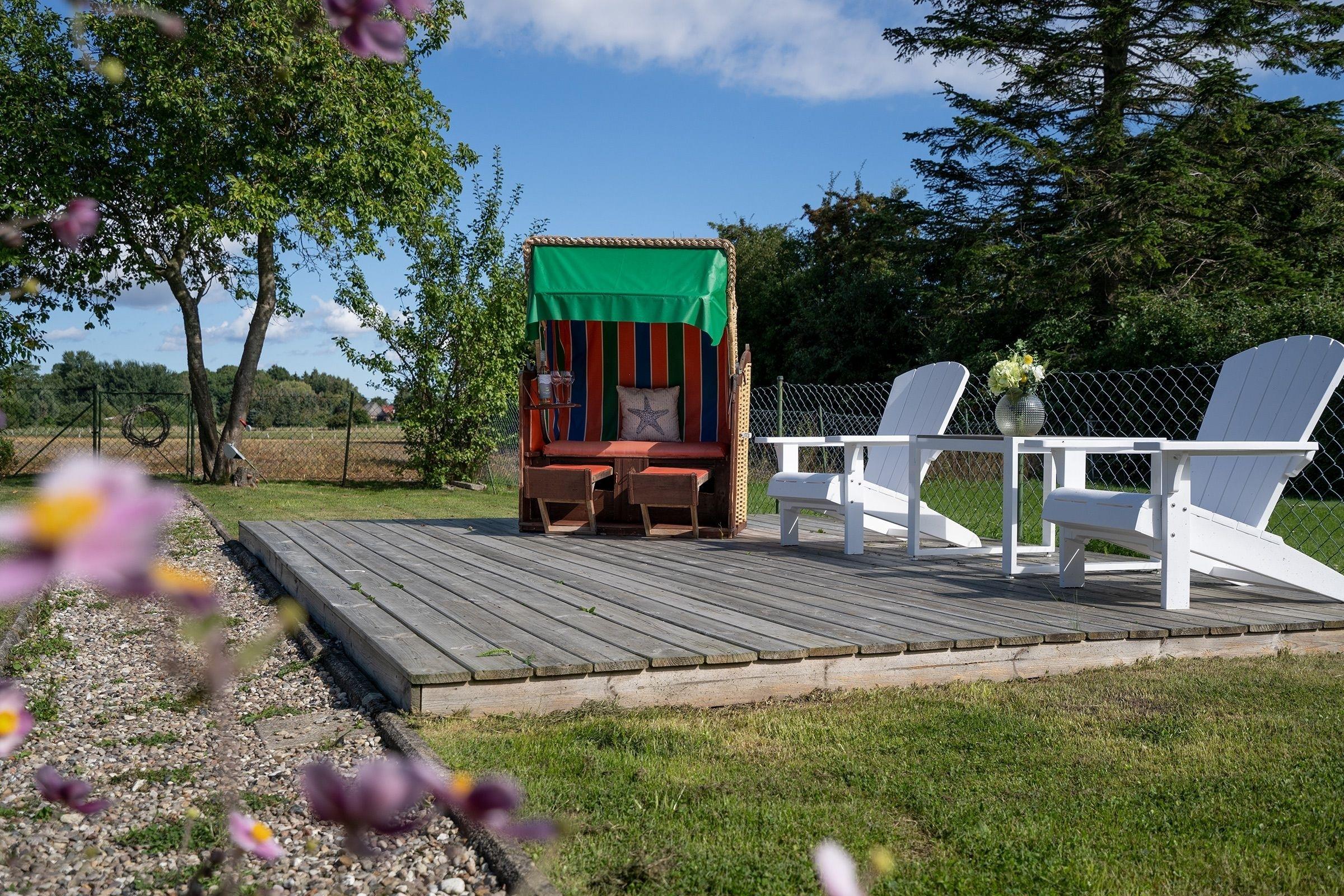 Charmantes Ferienhaus Klara in Grube mit Garten, Terrasse und Strandkorb, ideal für einen erholsamen Urlaub an der Ostsee.