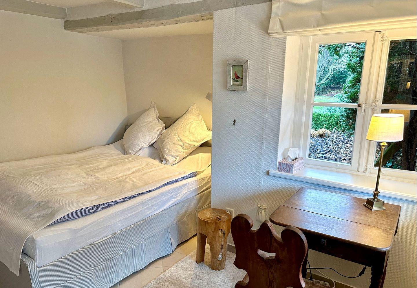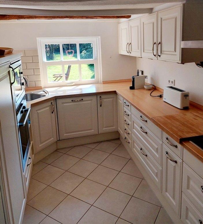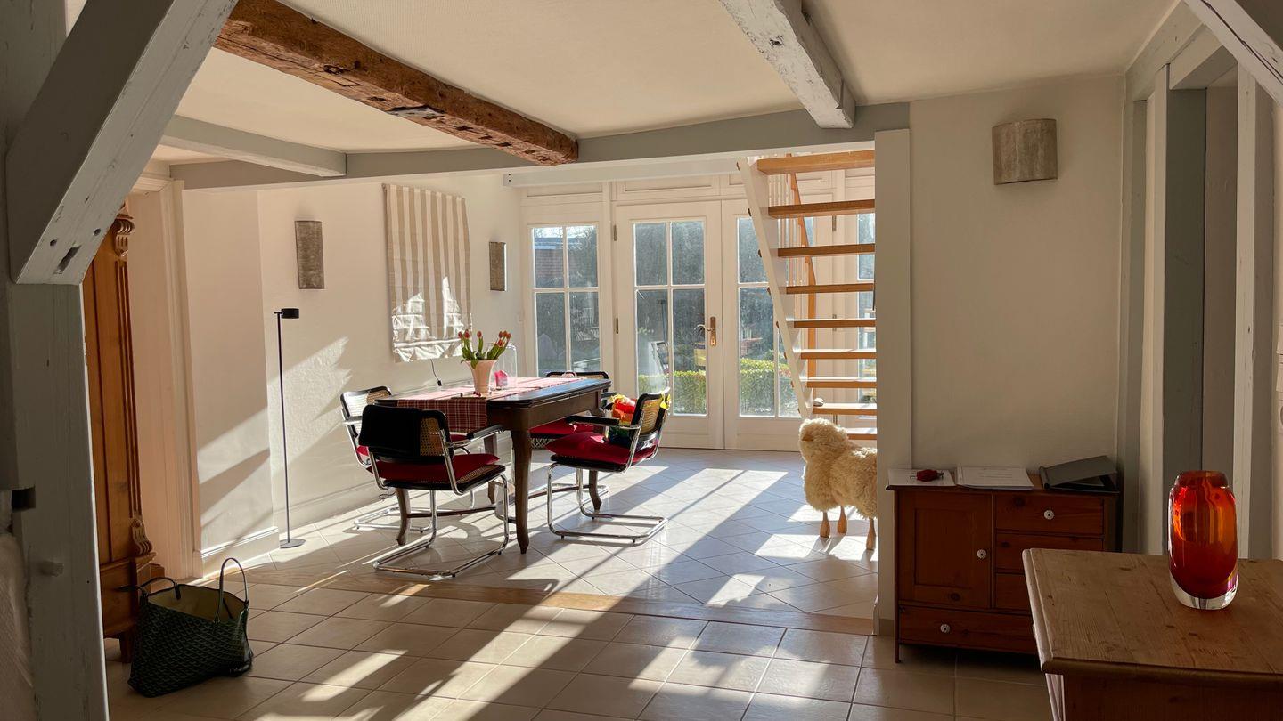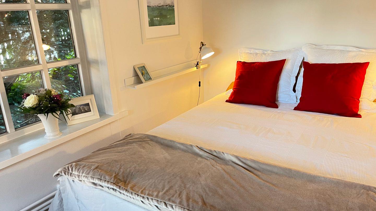Dieses charmante Reetdachhaus mit Eichenfachwerk wurde in den letzten Jahren liebevoll umgestaltet und modernisiert. Es bietet auf seinen großzügigen 143 qm Wohnfläche ein helles und einladendes Wohngefühl sowie ein gepflegtes Ambiente. Die Inneneinrichtung besticht durch ihre Hochwertigkeit und liebevolle Gestaltung. Der verglaste Eingangsbereich sorgt für viel Lichteinfall und bietet einen herrlichen Blick auf den Hof mit seinen liebevollen Buchsbaumhecken, den dänischen Pflastersteinen und kleinen Gebäuden. Im Eingangsbereich des Haupthauses befindet sich die einladende Diele mit einem stilvoll passenden Esstisch und Stühlen. Der anschließende offene Wohnbereich mit Flur und Wohnzimmer bietet viel Platz zum Entspannen und Erholen. Ein Kamin zaubert dazu an kühlen Tagen eine wohlige Atmosphäre. Für Unterhaltung sorgt der Fernseher sowie ein CD-Radiosystem im Wohnbereich. Im Erdgeschoss stehen Ihnen zwei separate Schlafzimmer mit komfortablen Doppelbetten (140cm x 200cm und 160 x 200 cm) und ausreichend Ablagemöglichkeiten zur Verfügung. Die Schlafzimmer sind mit Verdunkelungsrollos ausgestattet. Für die Kleinsten gibt es ein Kinderreisebett und einen Hochstuhl. Das Bad im Erdgeschoss verfügt über zwei separate Waschbecken und eine eingelassene Badewanne. Im Obergeschoss des Hauses befindet sich ein offener Wohnbereich mit Ottomanen, Bücherregal und kleine Sitzecke mit Blick in den Hof, von wo aus Sie die Sonnenaufgänge genießen können. Dort steht Ihnen ebenfalls ein komfortables Doppelbett (180x200cm) und Ablagemöglichkeiten zur Verfügung. Das zweite, separate Badezimmer im Obergeschoß ist mit einer ebenerdigen Dusche und WC ausgestattet. Im Erdgeschoss steht Ihnen eine Waschküche mit Waschmaschine und Trockner zur Verfügung. Ein Saunahaus im Garten rundet das Angebot ab und sorgt auch an kalten Tagen für entspannte Stunden.
